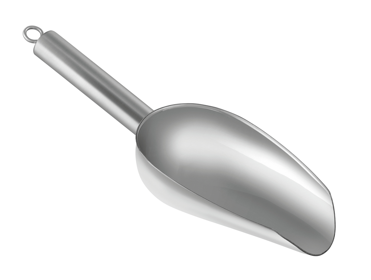 Mit der spülmaschinengeeigneten Schaufel aus Edelstahl können Popcorn, Mehl, Gewürze, Tee, Müsli oder Süßigkeiten sauber und hygienisch abgefüllt, portioniert bzw. abgewogen werden. Für eine geordnete Küche sorgt das Aufhängeloch am Ende des Griffes.