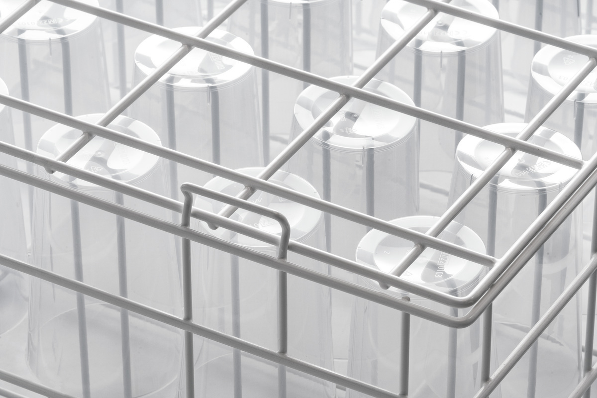 Mit dem Mehrwegbecherkorb können Becher und Gläser ohne verrutschen einfach und schnell in der Spülmaschine gereinigt werden. Die aufgesteckten Becher werden durch Aufsetzen und Schließen des Deckels sicher an ihrem Platz gehalten.