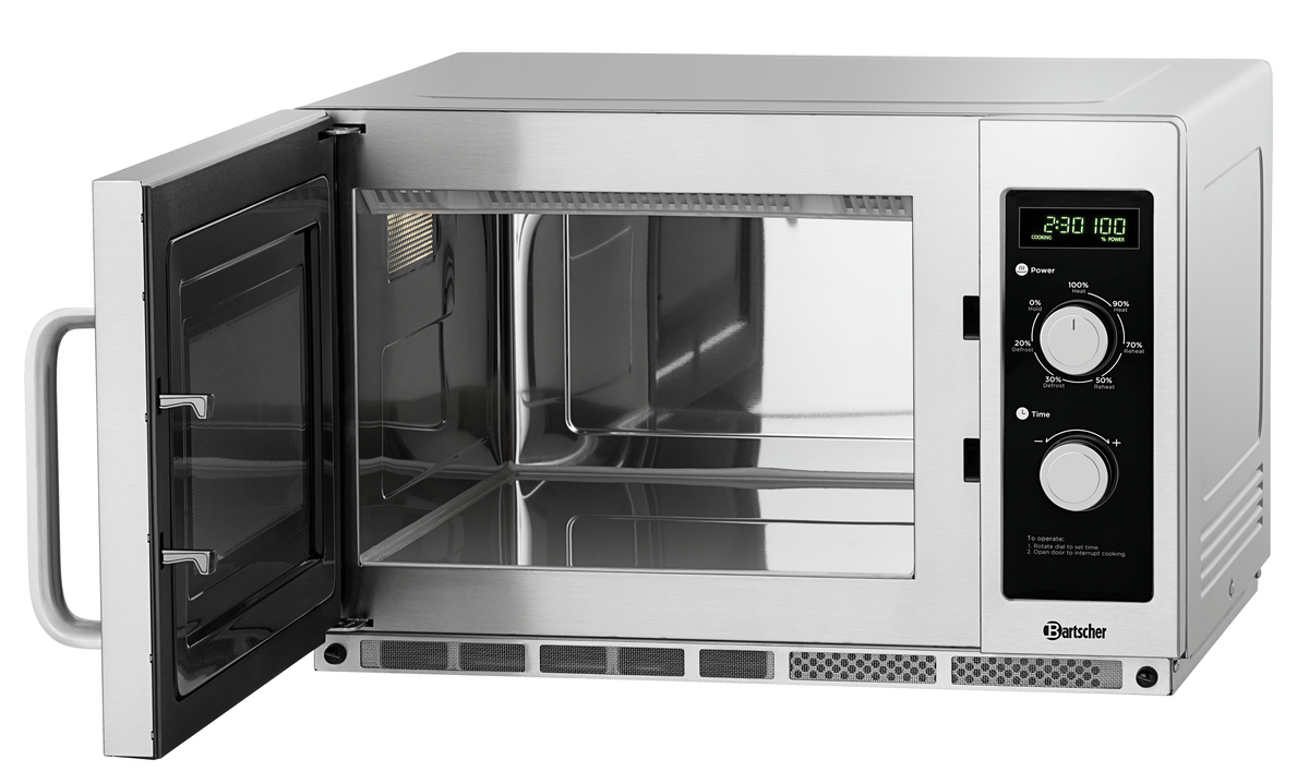 Der extra große Garraum der Mikrowelle ist mit einem Keramikboden ausgestattet. Dieser sorgt für eine gleichmäßige Wärmewirkung, die über die Mikrowellenleistung von 1800 Watt in 6 Stufen reguliert wird. Neben der Leistungsregulierung, kann das Erwärmen und Auftauen von Speisen über den Timer gesteuert werden.