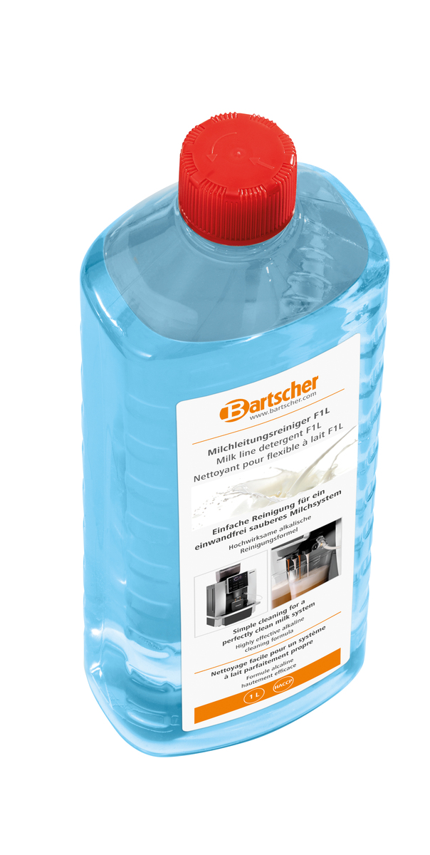 Ein Kaffeevollautomat mit einem einwandfrei sauberem Milchsystem mittels einer unkomplizierten Reinigung soll es sein. Das ermöglicht der Bartscher Milchleitungsreiniger F1L. Eine regelmäßige Anwendung sichert zudem die Geräte-Funktionsfähigkeit.
