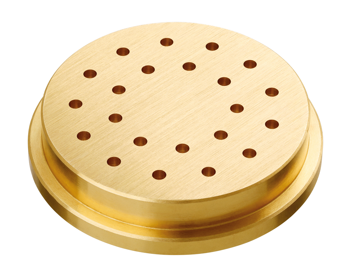 Mit der Pasta-Matrize aus Bronze, passend zu der Pastamaschine 8000, können hauseigene Bigoli in bester Qualität produziert werden.