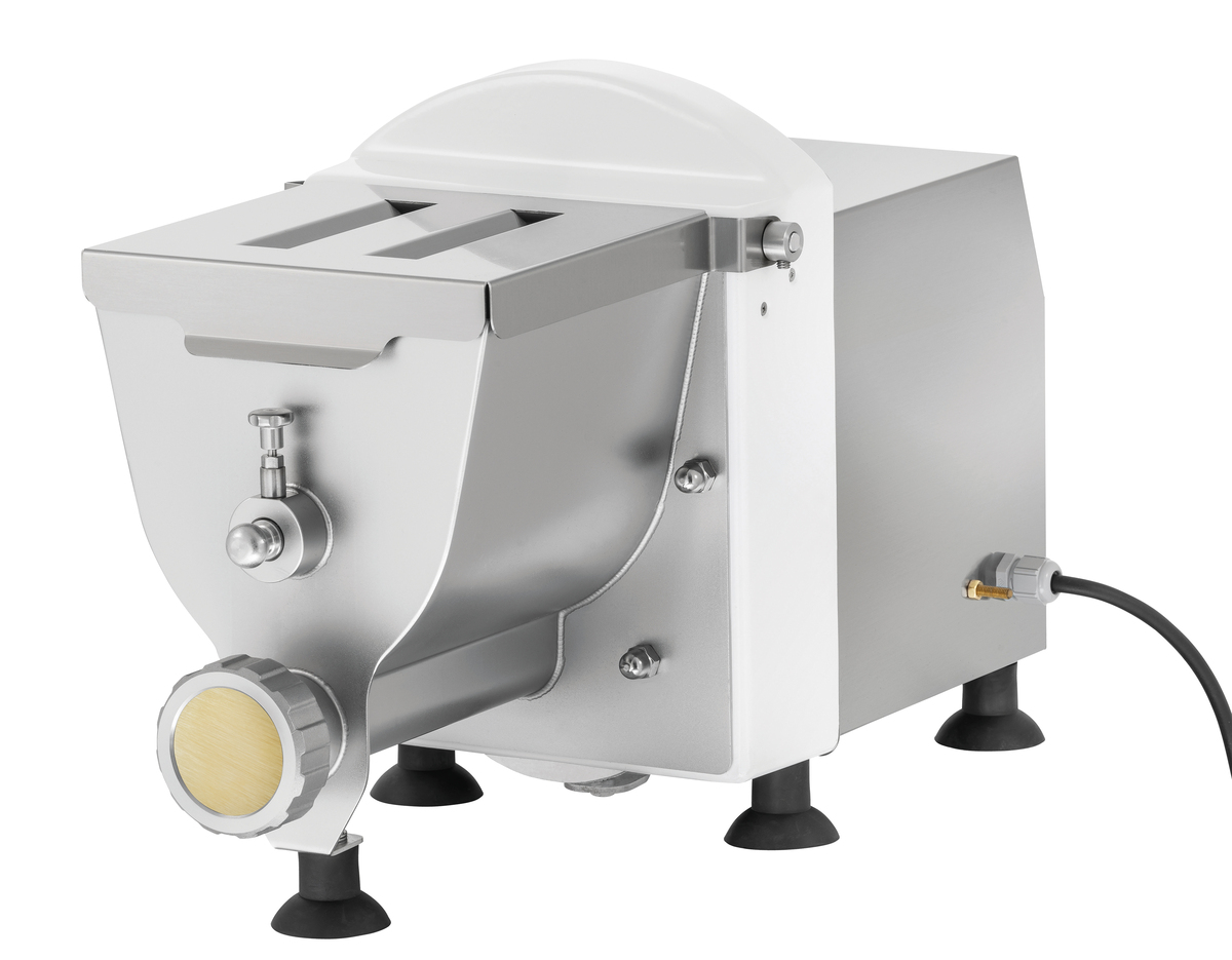 - Eigenschaften: 5 sichere Standfüße ,Knetwelle und Transportschnecke entnehmbar ,Teigbehälter abnehmbar ,Zum Kneten und Ausrollen von 12 verschiedenen Pasta-Sorten (Pasta-Matrizen optional erhältlich) ,Geräuscharm (kleiner 70 dB)
