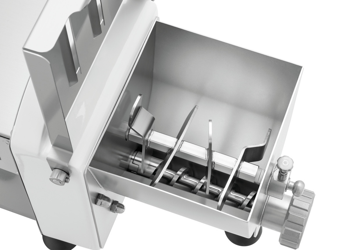 - Inklusive: Montagewerkzeug ,Teigbehälter, Knetwelle und Transportschnecke aus CNS 18/10 ,Verschlusskappe