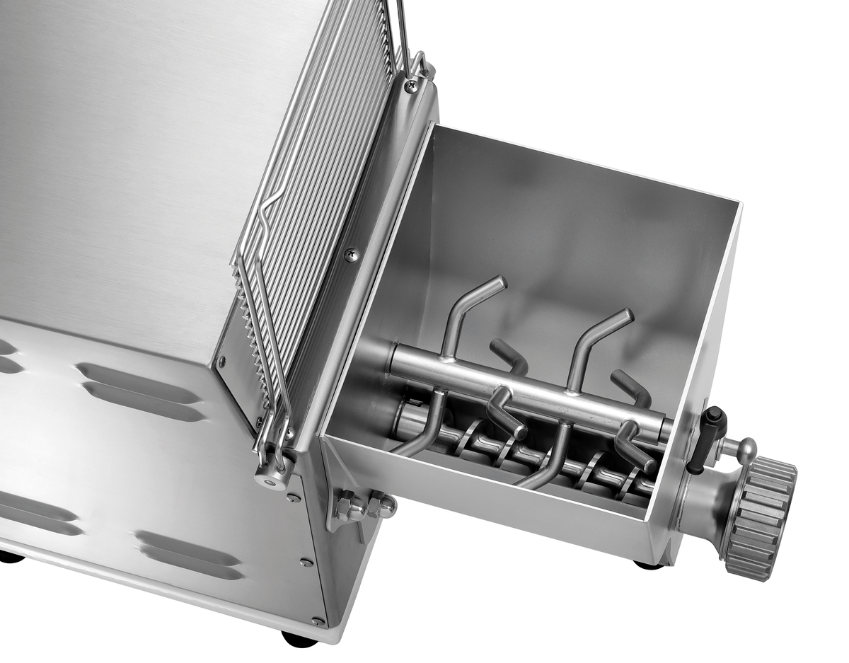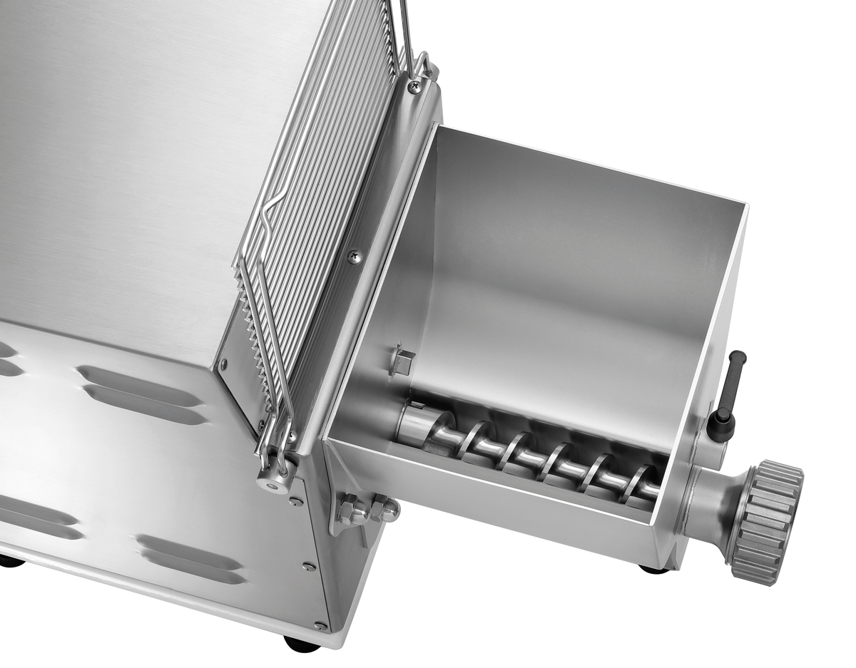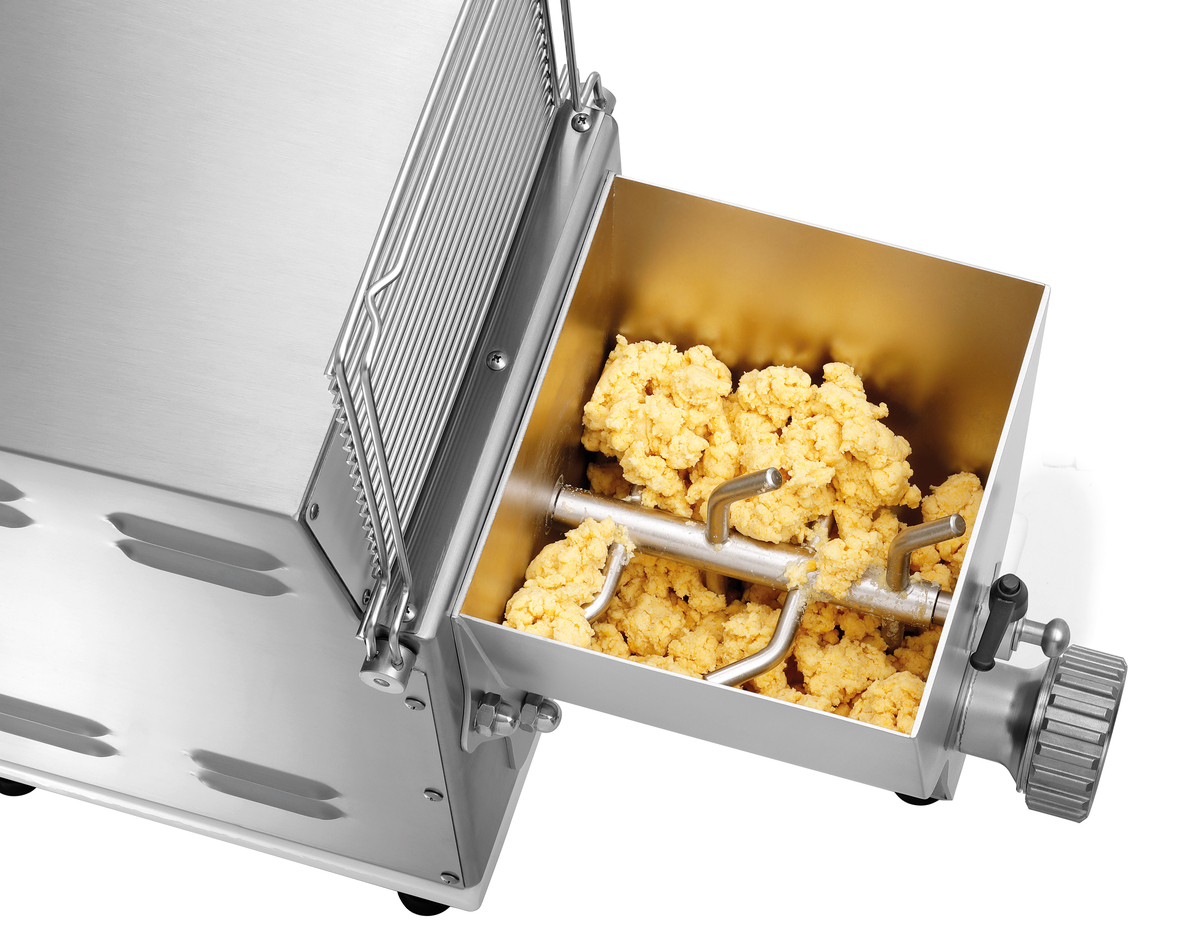- Inklusive: Montagewerkzeug ,Teigbehälter, Knetwelle und Transportschnecke aus CNS 18/10 ,Verschlusskappe