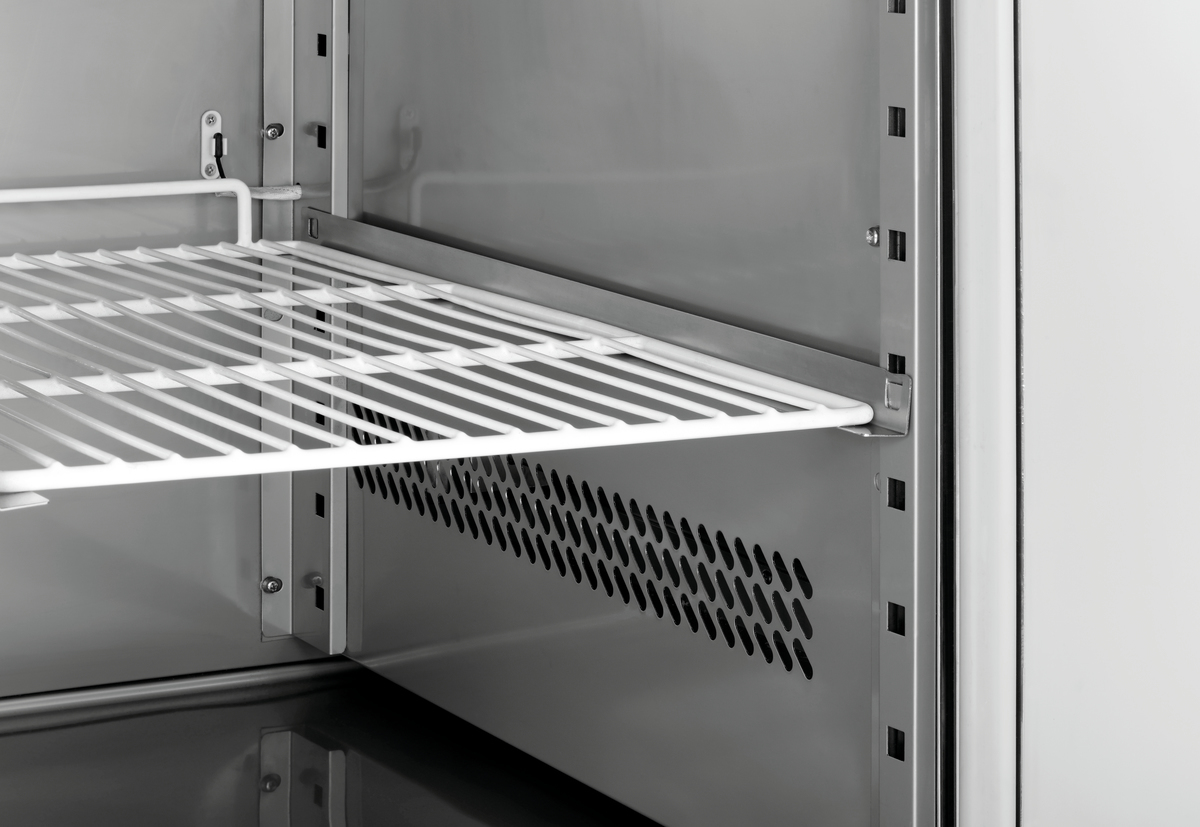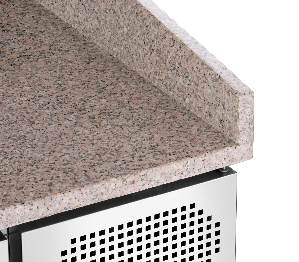 Der Pizzakühltisch G-S7T2 ausgestattet mit 7 Schubladen für Teigrohlinge und einer großzügigen Arbeitsplatte aus Granit ist der perfekte Mittelpunkt jeder Pizzeria. Der gekühlte Schrank hält mit 2 Türen die Zutaten frisch und griffbereit.