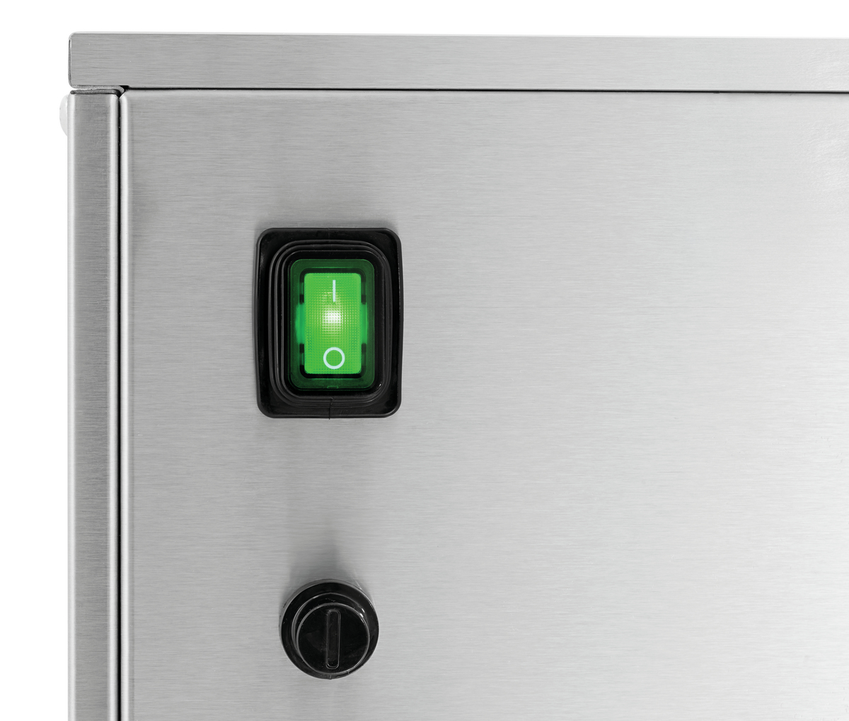 Der Pizzaofen produziert nach kurzer Aufheizzeit gefrorene oder vorgebackene Pizzen mit knusprigem Boden und saftigem Belag. Das kompakte Edelstahlmodell ist ausgelegt für kleinere Produktionsmengen - ideal für Bistros, Snackbars oder Imbissbetriebe. Für eine einfache Handhabung ist der Ofenrost mit Tür und Griff verbunden.