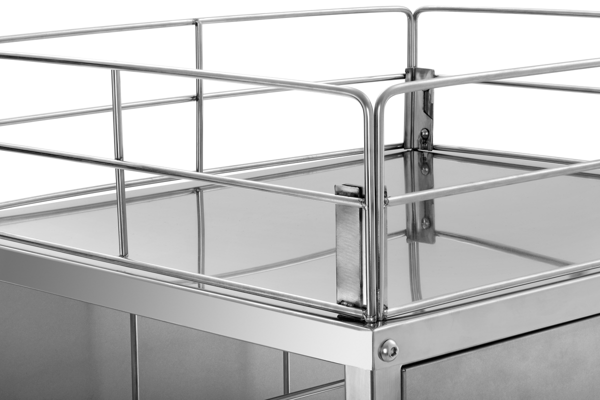 Kompakt und zuverlässig im Einsatz: Auf 10 Einschüben lassen sich GN-Behälter, Roste und Tabletts bis 1/1 GN sicher transportieren. Eine zusätzliche Stellfläche mit integrierter Transportsicherung bietet zudem sicheren Halt für Kannen, Gläser und Flaschen.
