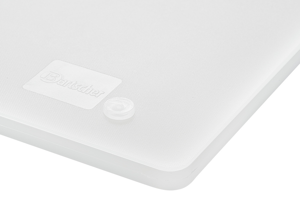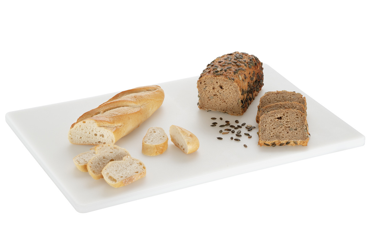 Hygiene im Fokus mit den Schneidbrettern im Format 60 × 40 cm - Verschiedenfarbige Schneidbretter für unterschiedliche Lebensmittelgruppen. Das HACCP-konforme Schneidbrett in weiß - für Backwaren oder Milchprodukte - überzeugt durch seine Langlebigkeit.