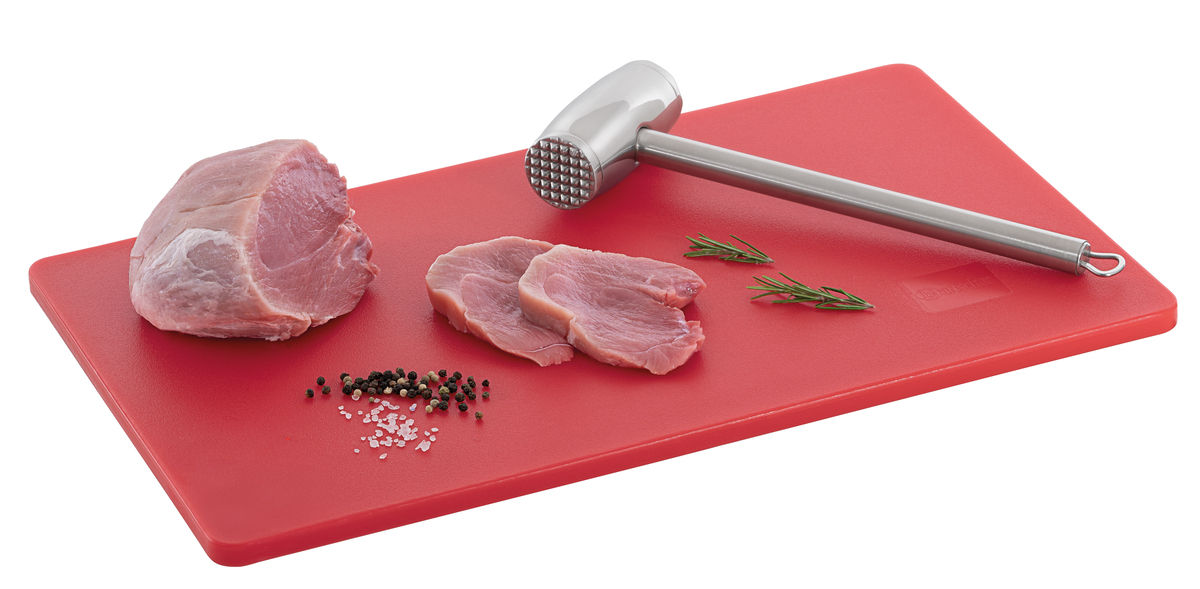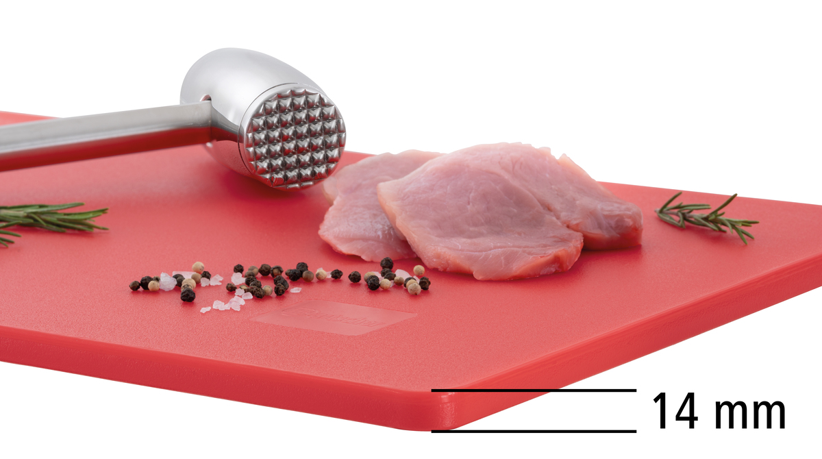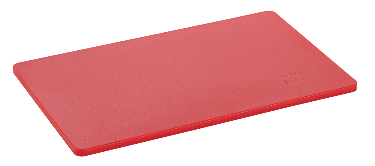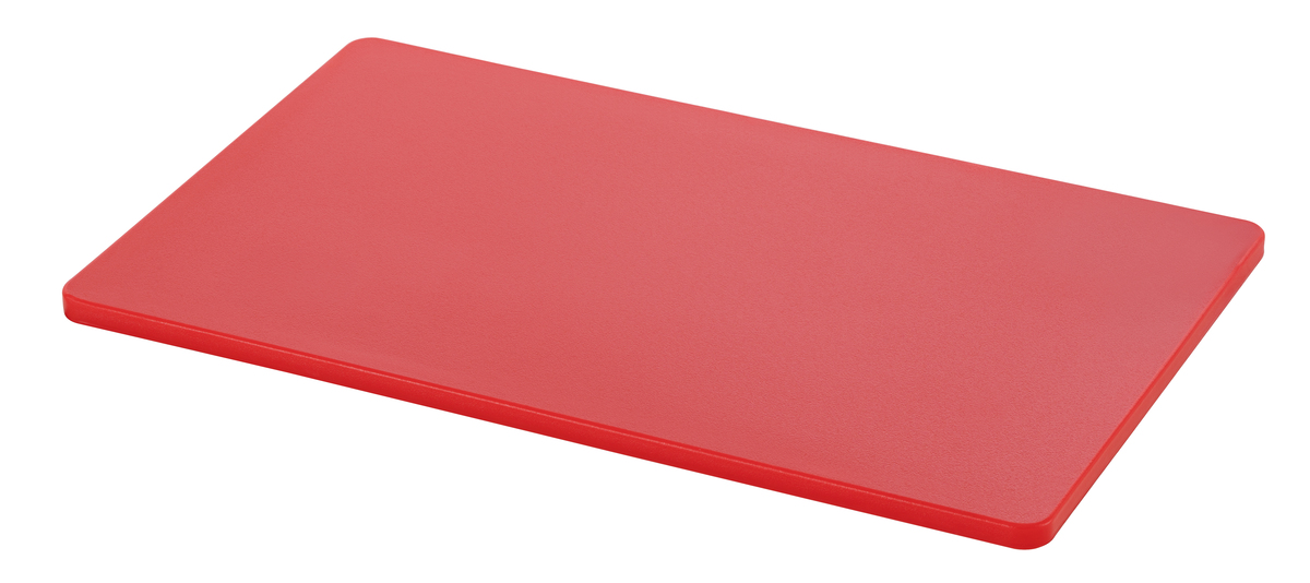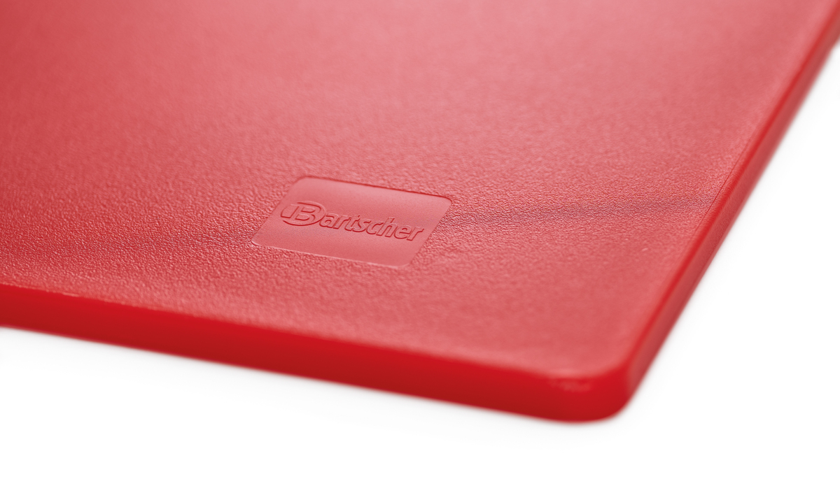 Hygiene im Fokus mit den Schneidbrettern im Format 53 × 32 cm - Verschiedenfarbige Schneidbretter für unterschiedliche Lebensmittelgruppen. Das beidseitig nutzbare, HACCP-konforme Schneidbrett in rot - für rotes Fleisch wie z. B. Rind, Schwein oder Wild - überzeugt durch seine Langlebigkeit.