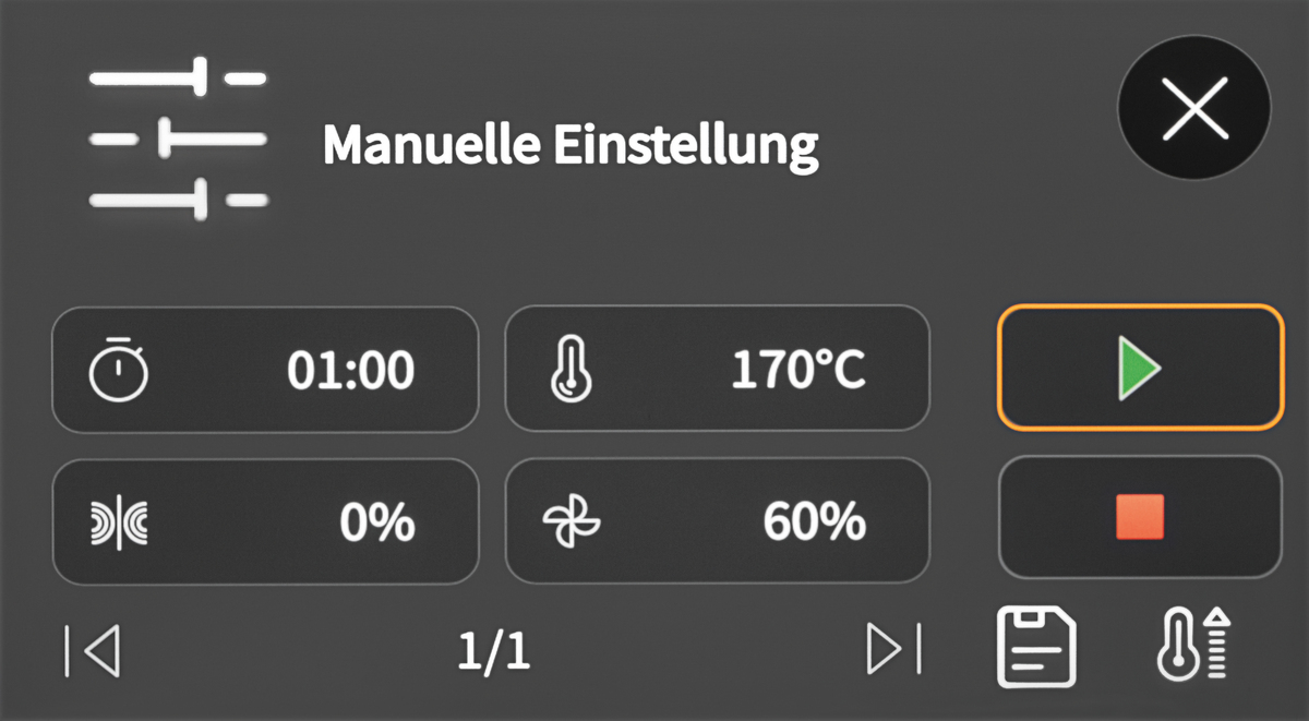 - Anzahl Garphasen: 10 max. je Programm