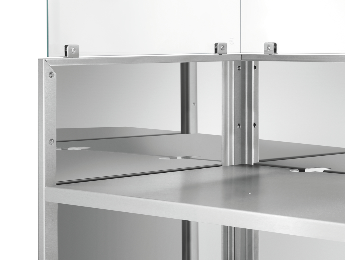 - Inklusive: Glasaufsatz ,2 Verbindungselemente ,Umsteckbare Bodenverstärkung für optional erhältliche Einlegeböden