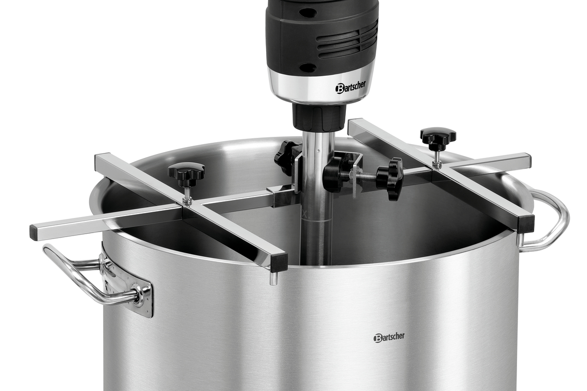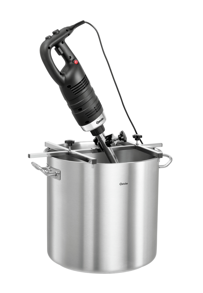 Große Zeitersparnis und mehr Flexibilität in der Küche - Mit Unterstützung der Stabmixer-Halterung macht sich die Arbeit fast von allein. Der Stabmixer wird in der Halterung wunschgemäß festgehalten und Speisen können so freihändig zerkleinert, püriert und unter Rühren erwärmt werden.