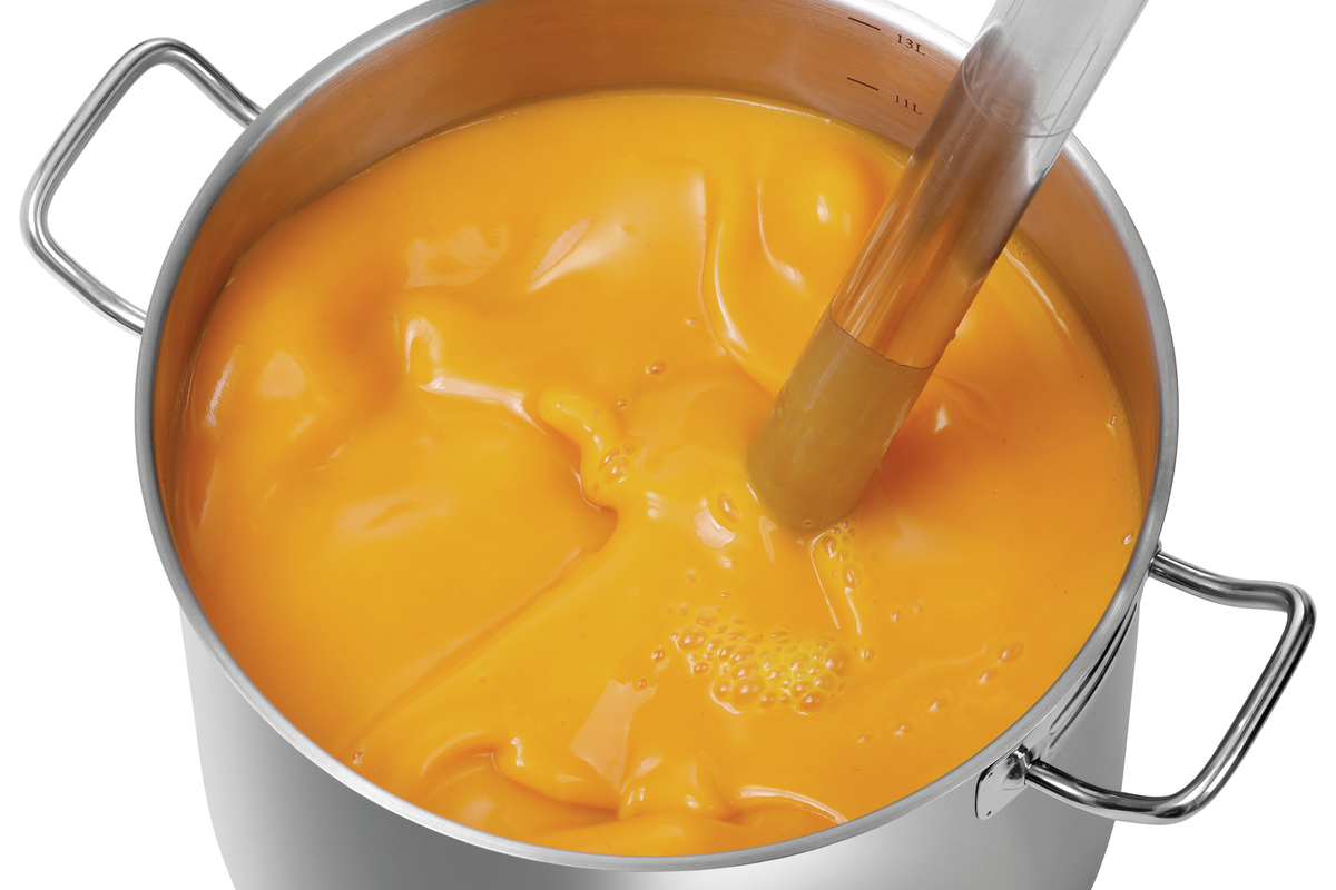 Mit dem leistungsstarken Stabmixer lassen sich bis zu 120 Liter in einem einzelnen Arbeitsgang verarbeiten. Dank der stufenlosen Geschwindigkeitsregulierung lassen sich ganz nach Bedarf Gemüse zerkleinern oder mixen sowie Suppen, Soßen, Dips und Dressings pürieren.