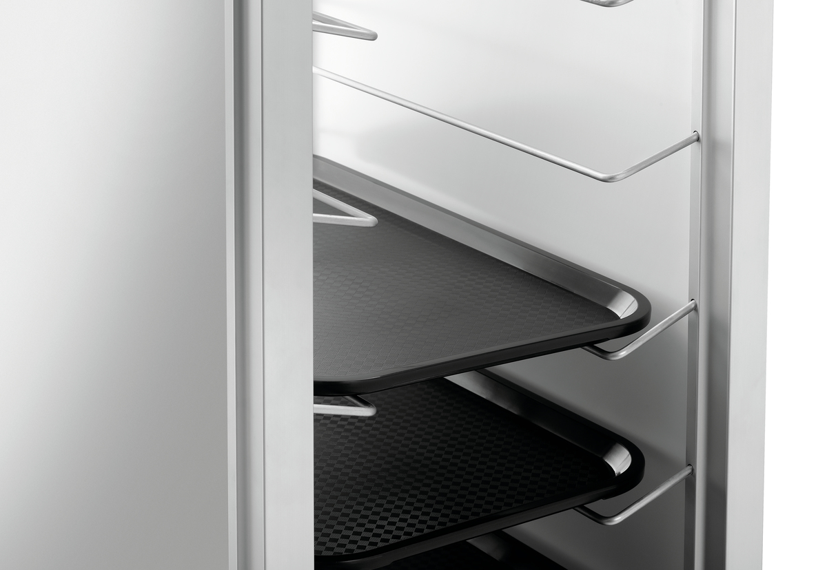 Der robuste Abräumwagen überzeugt durch seine hohe Tragfähigkeit und die extra großen Einschübe im 1/1 GN-Format.