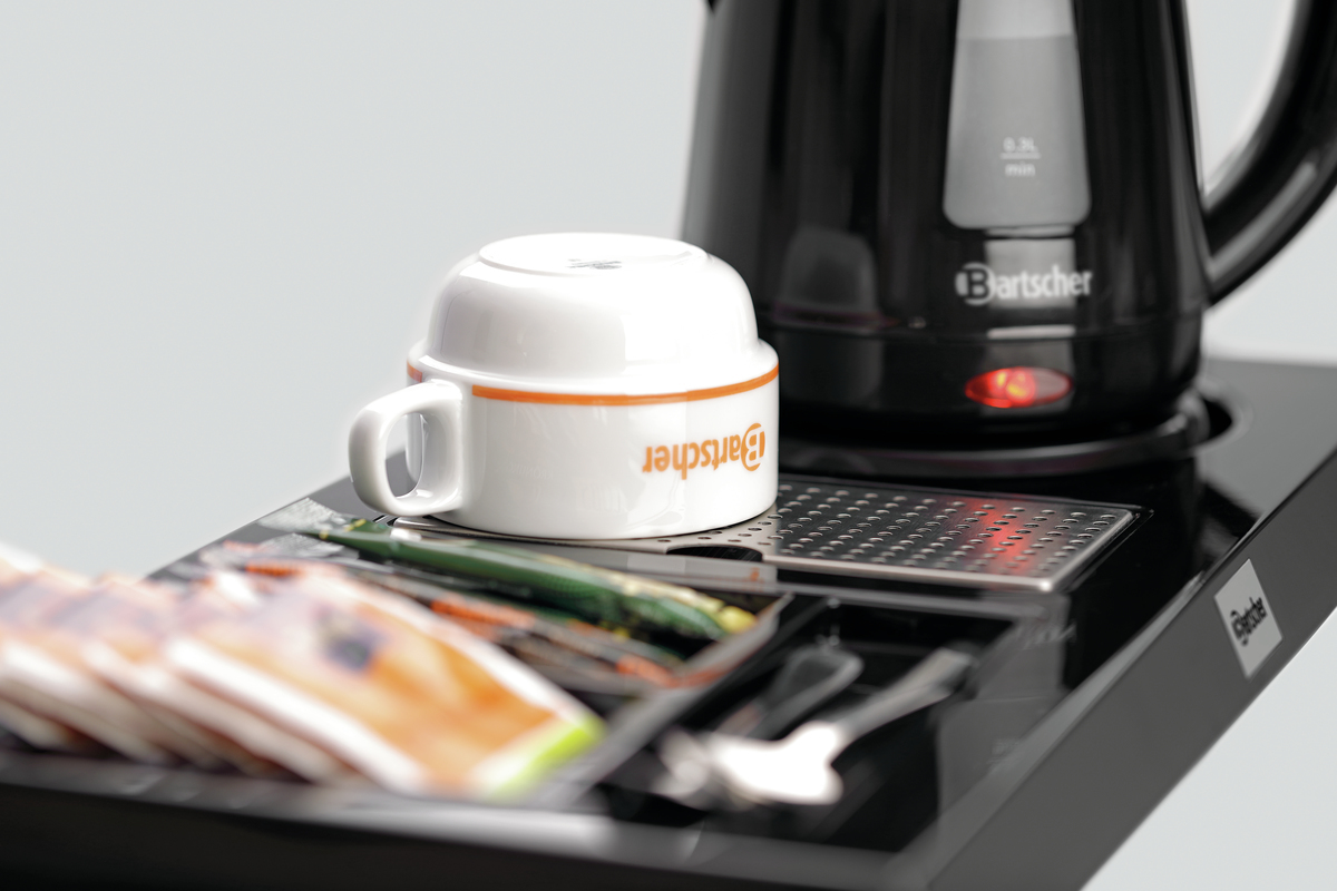 Heißwasser für Tee, Instantkaffee oder andere Aufgussgetränke: Ob auf dem Hotelzimmer, in Wartebereichen oder bei der Kundenberatung. Mit der Teestation ist alles ordentlich und sofort griffbereit - Vom Teebeutel bis hin zum Löffel.