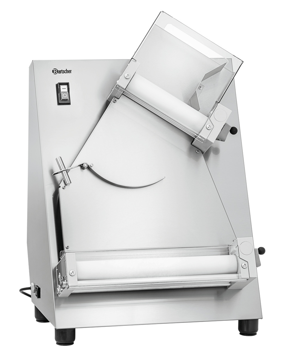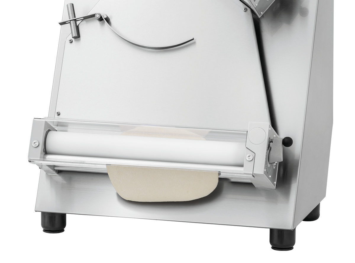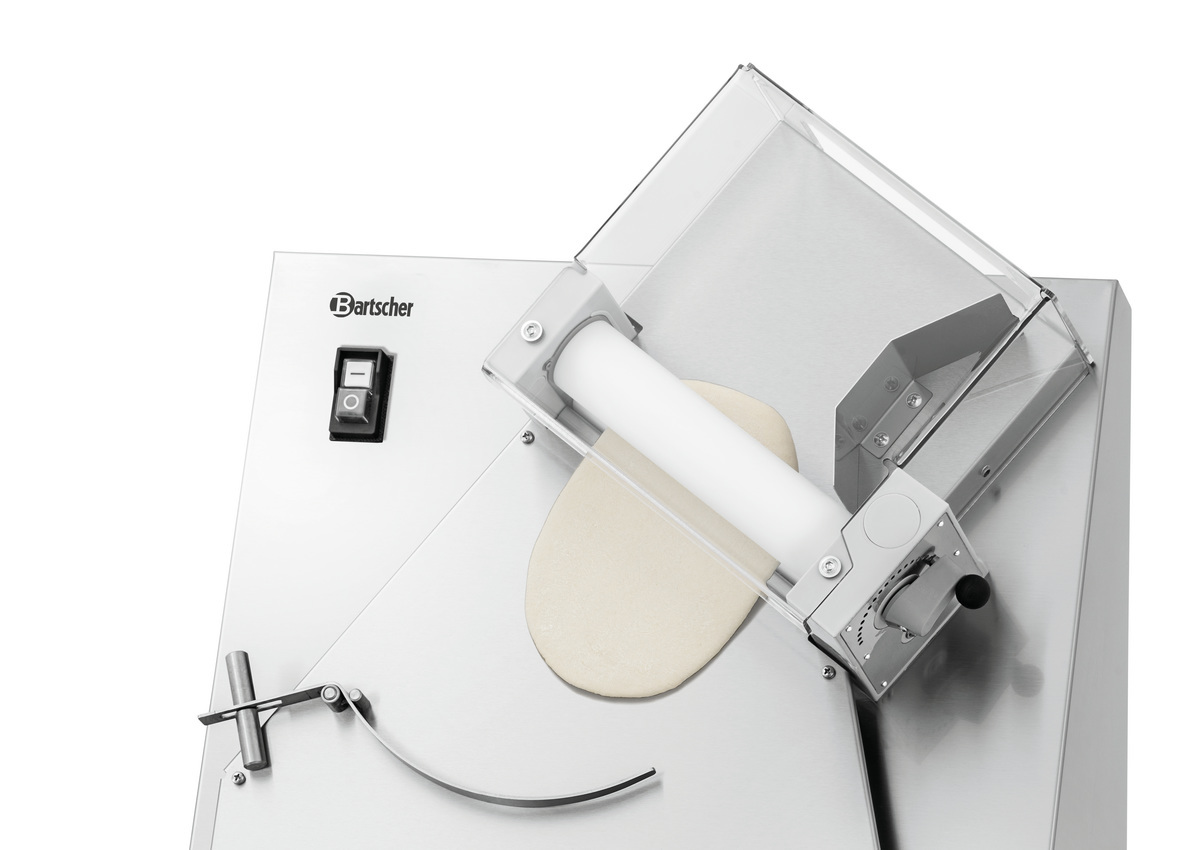 Für ein perfektes Ergebnis bei minimalem Arbeits- und Zeitaufwand - mit der Teigausrollmaschine gelingen Teige mit einem Durchmesser von bis zu 400 mm im Handumdrehen. Die vielseitige Produktion von Flammkuchen-, über Pizza- bis hin zu Fladenbrotteig ist ganz einfach über die Teigstärkeneinstellung der beiden Teigrollen möglich.