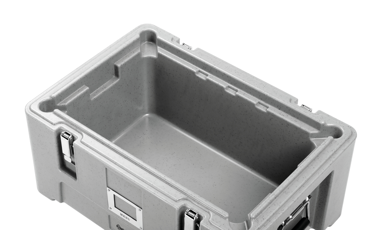 Unbeheizte Toploader-Box geeignet für kalte und warme Speisen. Bei Caterings, auf Events oder im Außer-Haus-Betrieb lassen sich Speisen in 1/1 GN-Behältern bis zu einer Tiefe von 150 mm sicher und temperaturbeständig transportieren.