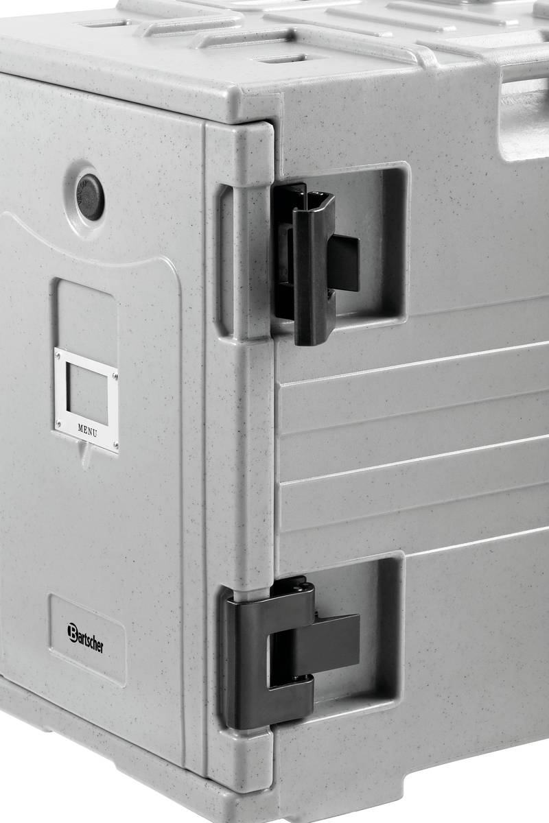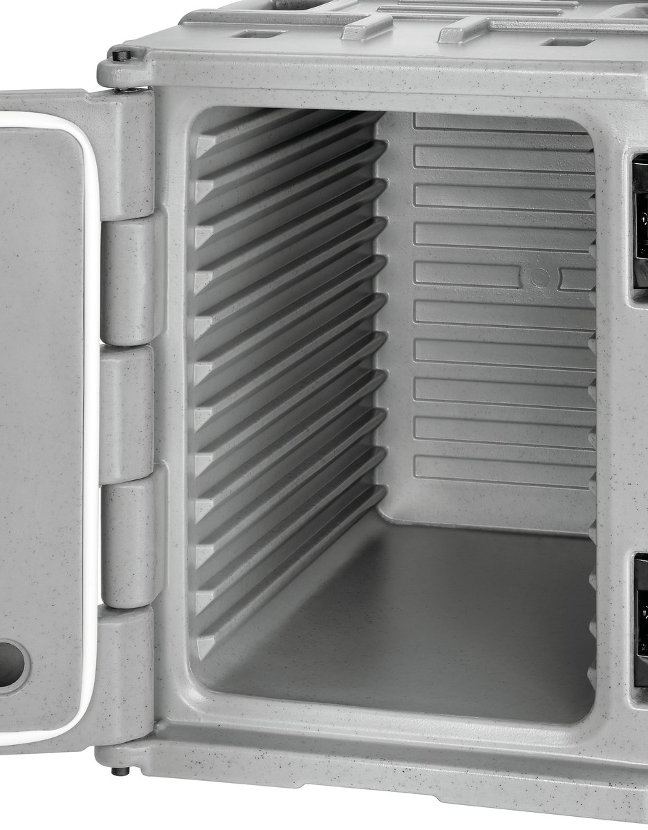 Unbeheizte Frontloader-Box geeignet für kalte und warme Speisen. Bei Caterings, auf Events oder im Außer-Haus-Betrieb lassen sich Speisen in Behältern im 1/1 GN-Format sicher und temperaturbeständig transportieren.