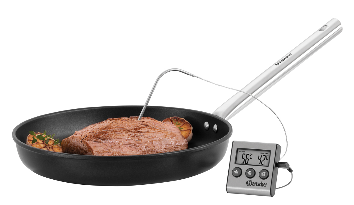 Das Thermometer mit externem, digitalem Display und präzisem Kerntemperaturfühler wird schnell zum unverzichtbaren Helfer in der Küche. Dank der flexiblen Platzierung - ob per Magnet am Ofen oder frei stehend neben der Pfanne - behält man die Kerntemperatur des Garguts immer im Blick. Ein Signalton informiert über das Erreichen der Wunschtemperatur auch in Stoßzeiten.