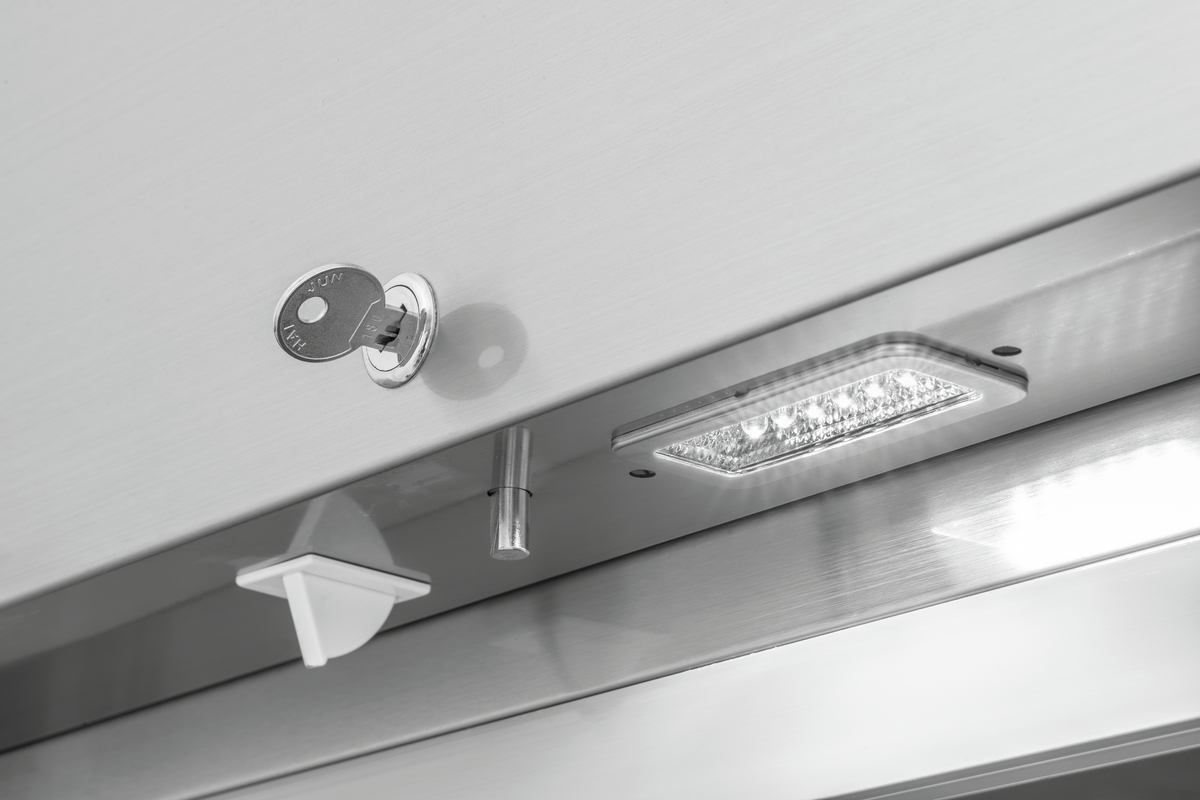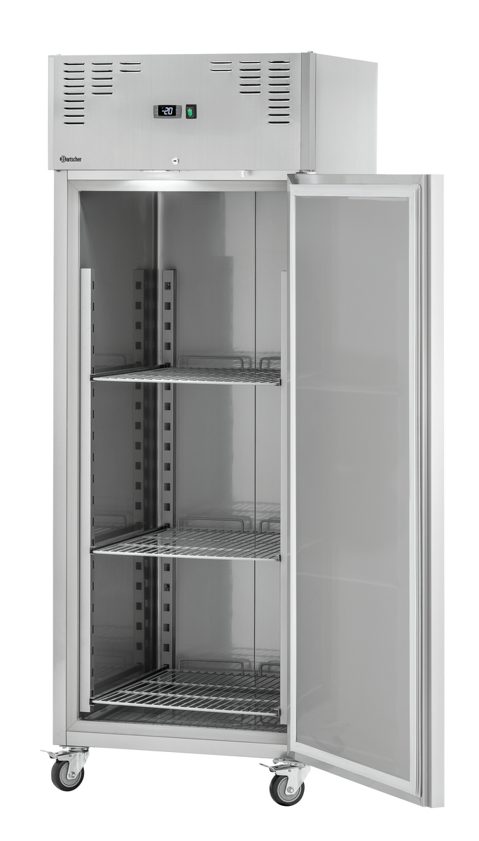 Dank des großzügigen Platzangebots lässt sich Tiefkühlware auf den höhenverstellbaren Rosten im 2/1 GN-Format übersichtlich lagern und bevorraten. Die leistungsstarke Umluftkühlung des Edelstahl-Tiefkühlschranks trotzt der Größe und sorgt im Innenraum für eine gleichmäßige und konstante Temperatur.
