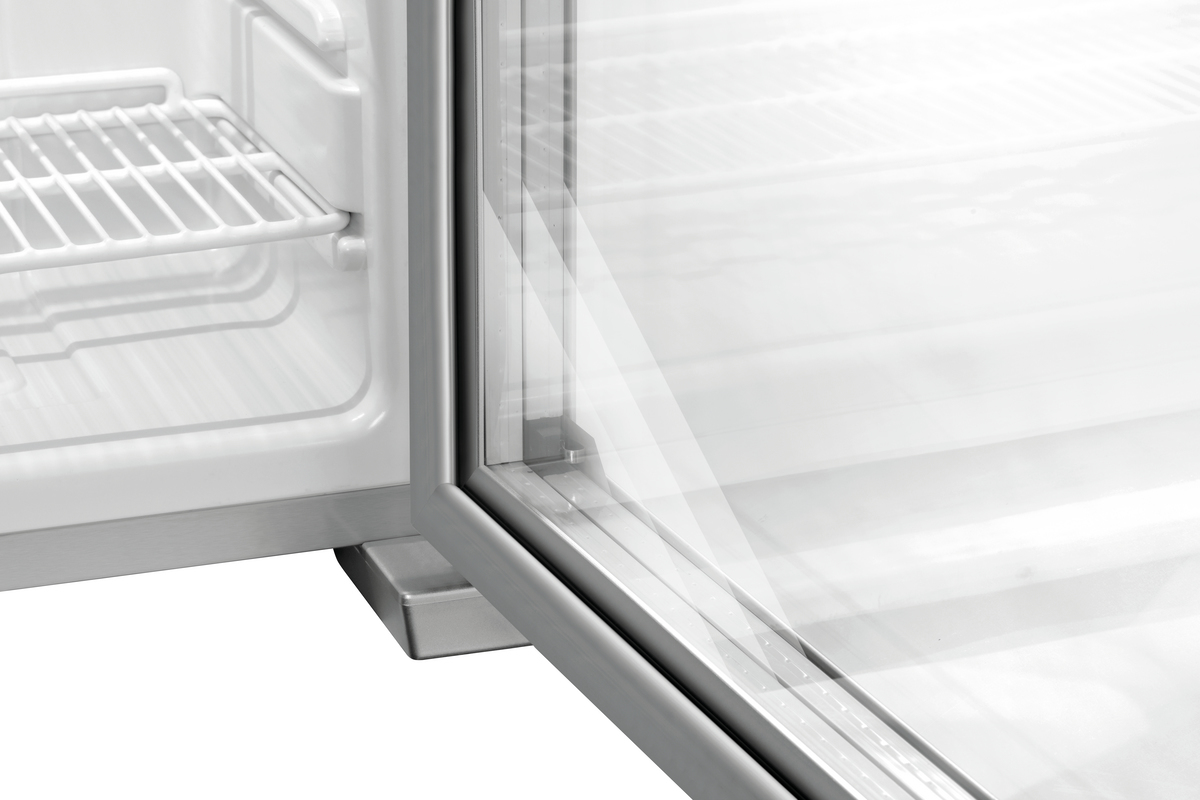 Tiefkühlschrank mit 90 Litern Fassungsvermögen, Glastür und separat schaltbarer Scheibenheizung. Ideal für eine perfekte Präsentation von Tiefkühlwaren wie Speiseeis in Kiosken, Kinos, Tankstellen, Bistros oder Bars.