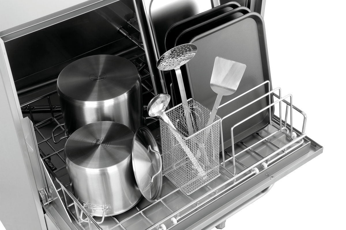 Die TS 850 R ist mit dem mitgelieferten Universalkorb und Tabletthalter für die Reinigung besonders sperriger Spülgüter bestens geeignet. Sie sorgt für optimale Spülergebnisse bei Töpfen, Pfannen, Tabletts, Schüsseln und Schalen.