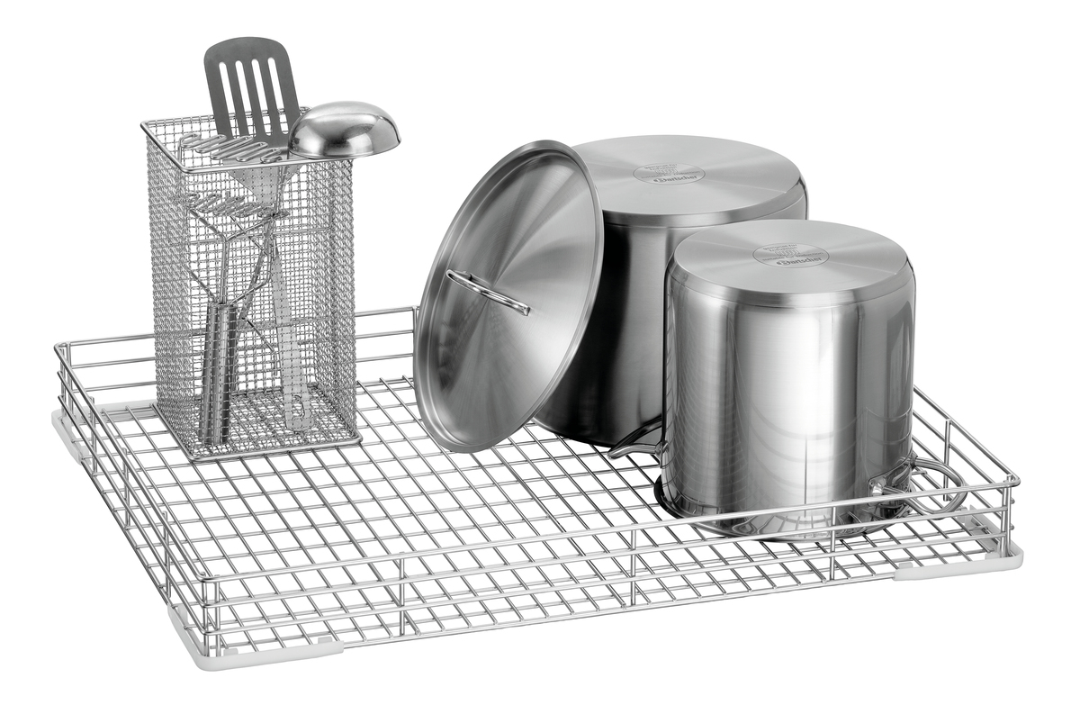Individuell nutzbarer Spülkorb aus Edelstahl für Töpfe, Pfannen oder GN-Behälter passend zur Tablettspülmaschine TS5500.