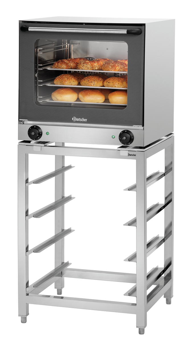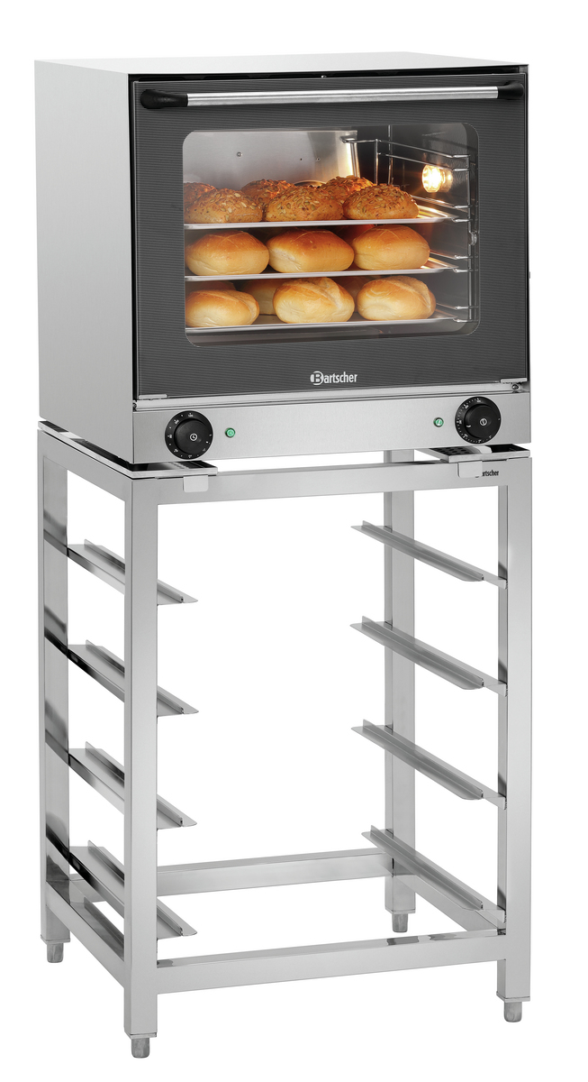 Das Untergestell zu den Heißluftöfen AT90 und AT120 ist mit 4 Einschüben für das Format 438 x 315 mm ausgestattet. Ideal für die Lagerung sauberer, vorbereiteter sowie benutzter Bleche.