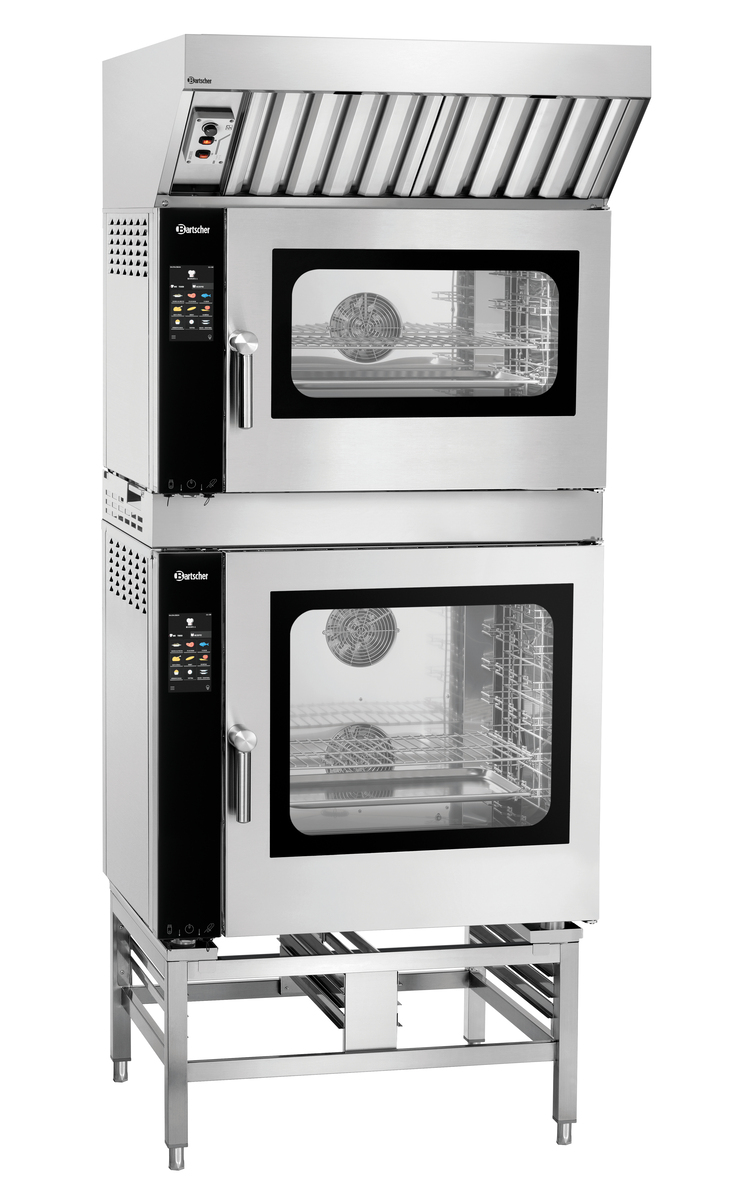 Das extra niedrige Untergestell ermöglicht das Stapeln von 2 Kombidämpfern 1/1 GN in Kombination mit dem passenden Verbindungskit. So ist ein Bestücken in sicherer Arbeitshöhe gewährleistet.