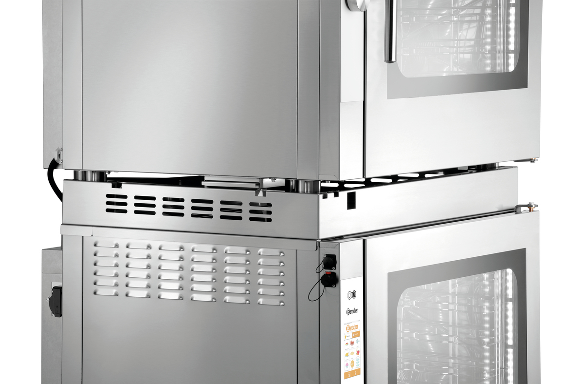 Die platzsparende Lösung: Das Verbindungskit ermöglicht das Stapeln von 2 Elektro-Kombidämpfern 1/1 GN der Serie Silversteam.