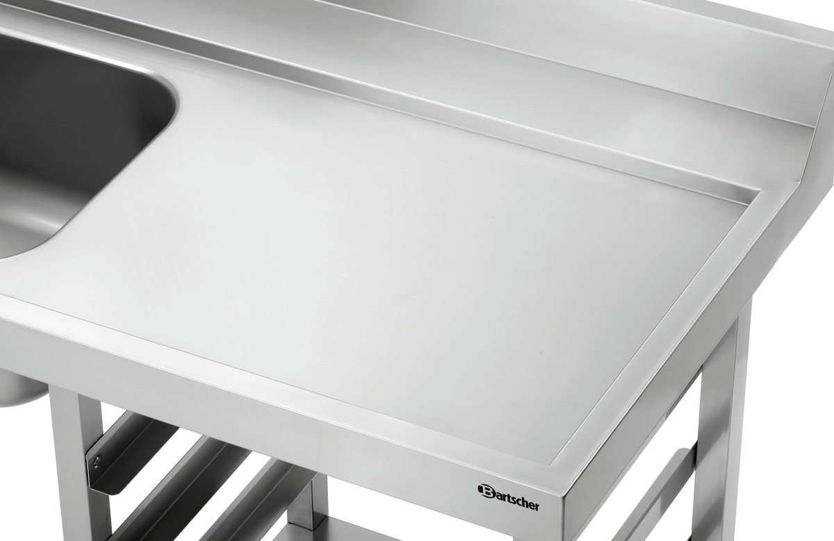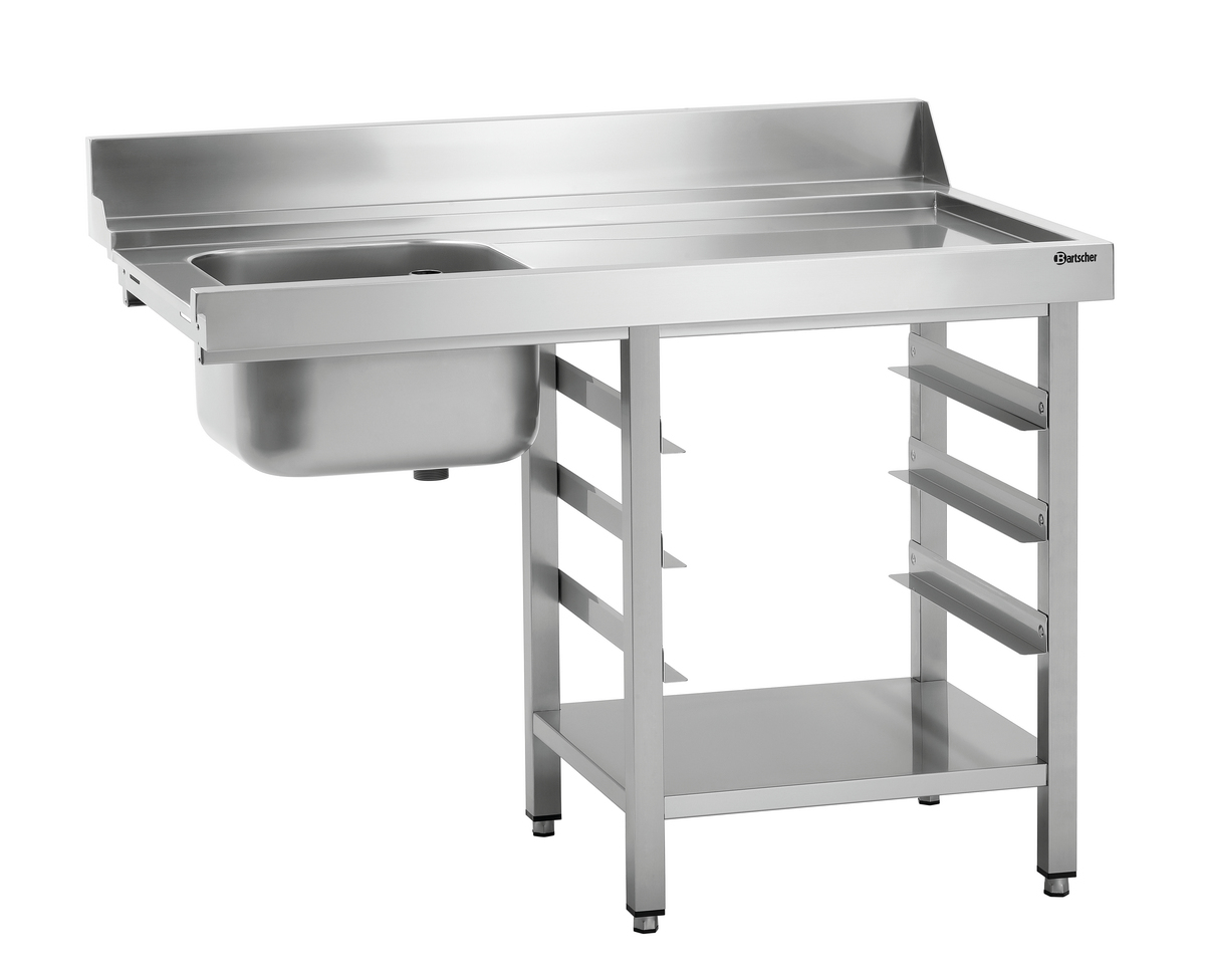 Die zu den Durchschubspülmaschinen DS passende Vorabräumung ist mit einem 40 Liter Spülbecken ausgestattet und ausgelegt für den rechtsseitgen Anbau. In den 3 praktischen Spülkorbeinschüben können 500x500er und 600x500er Körbe mit einer Höhe von bis zu 145 mm verstaut werden.