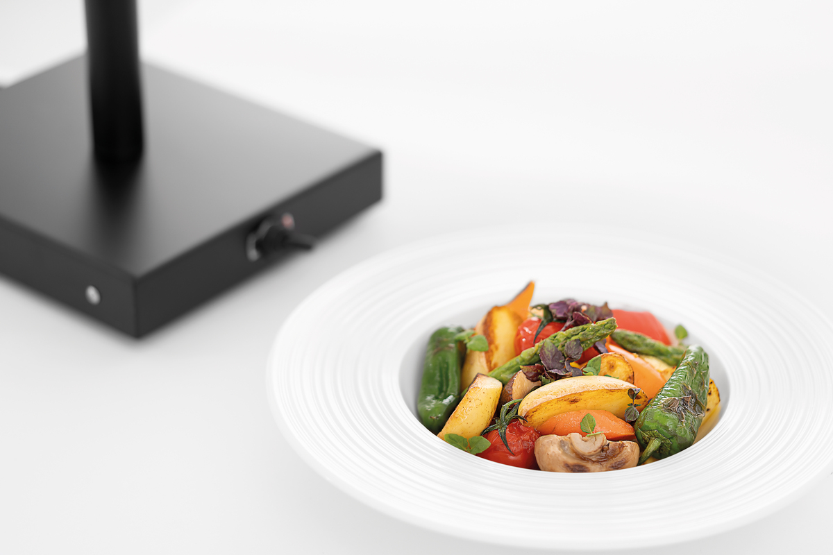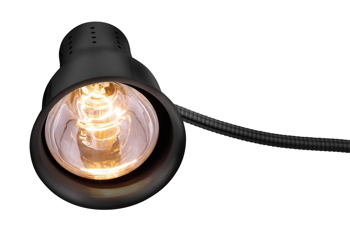 Die Wärmelampe in edlem Schwarz hält Speisen mit Infrarotwärme zuverlässig warm. Dank des flexiblen Lampenarms ist sie der perfekte Küchenhelfer - ob bei der Vorbereitung, der Speiseausgabe oder am Buffet.