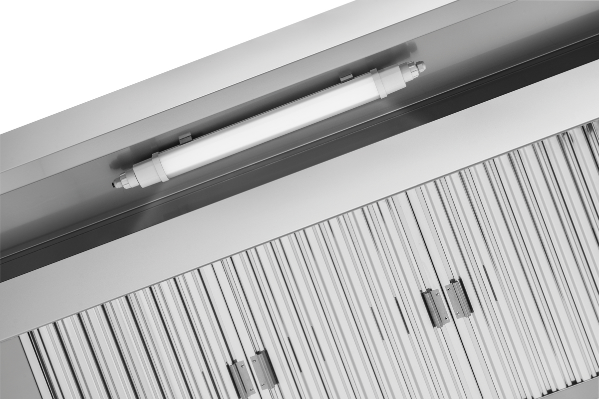 - Eigenschaften: Beleuchtung blendfrei eingebaut mit Fettschutzabdeckung ,Filterträger mit zusätzlichem Fettauffangkanal