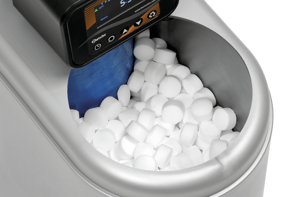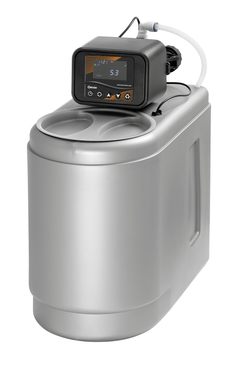 Die Wasserenthärtungsanlage reduziert die Verkalkungen in gewerbliche Spülmaschinen und optimiert das Spülergebnis durch weniger Ablagerungen von Härtebildnern auf dem Spülgut. Dank des weicheren Wassers wird der Verbrauch von Reinigungsmitteln minimiert. Das akustische Signal weißt auf einen geringen Füllstand des Salzbehälters zuverlässig hin.