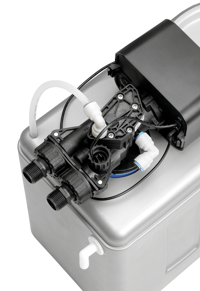 - Leistungskapazität: 1.500 Liter / Tag bei 10° dH (Gesamthärte)