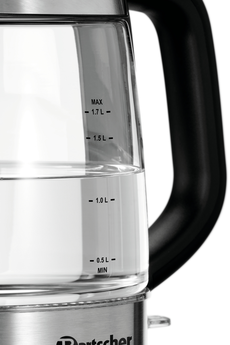 Der Wasserkocher in ansprechender Glas-Ausführung mit attraktiver blauer Bodenbeleuchtung überzeugt durch seine Leistungsstärke.