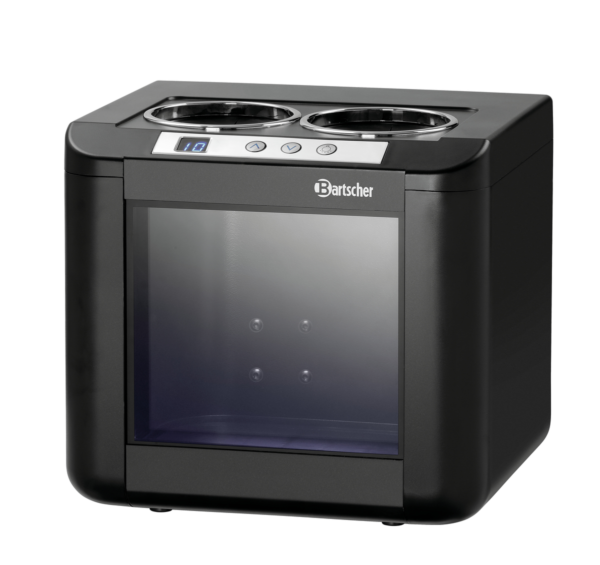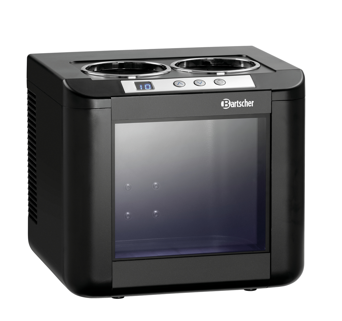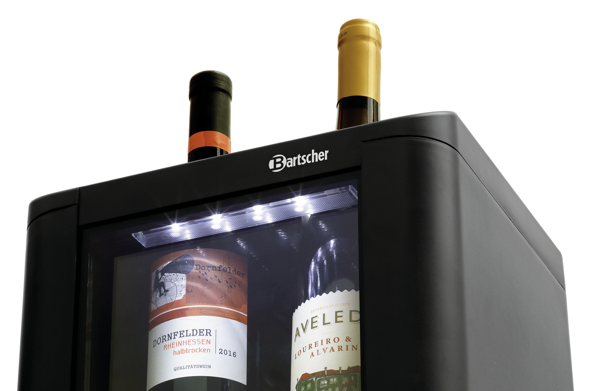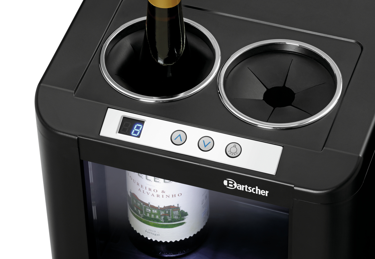 Für eine repräsentative Kühlung von Weinen im Offenausschank. Mit der integrierten LED-Beleuchtung werden in dem Weinkühler 2 Flaschen Weiß-, Rosé- oder Rotwein am Buffet, am Restauranttisch, an der Bar oder auch beim Wein-Tasting stilvoll präsentiert.