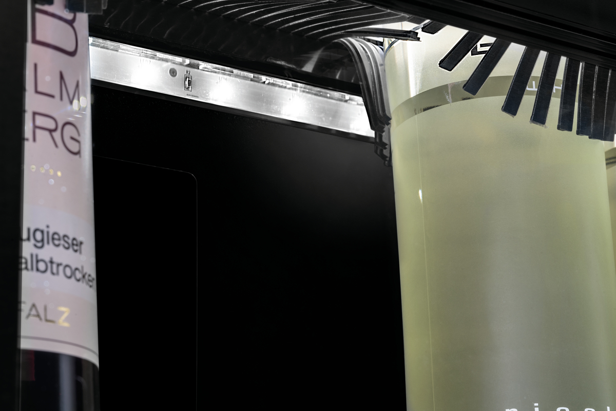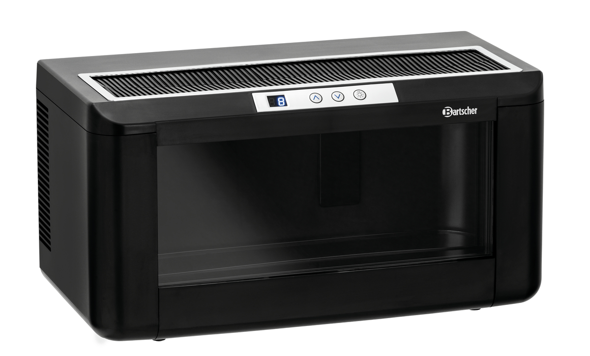 Der Weinkühler mit LED-Beleuchtung bietet Platz für vier bis fünf Weinflaschen. Auch Sekt- und Bordeauxflaschen können problemlos innerhalb einer Temperaturzone temperiert werden. Dank des schlichten und modernen Designs hervorragend geeignet für Restaurants, Bars und Buffets.
