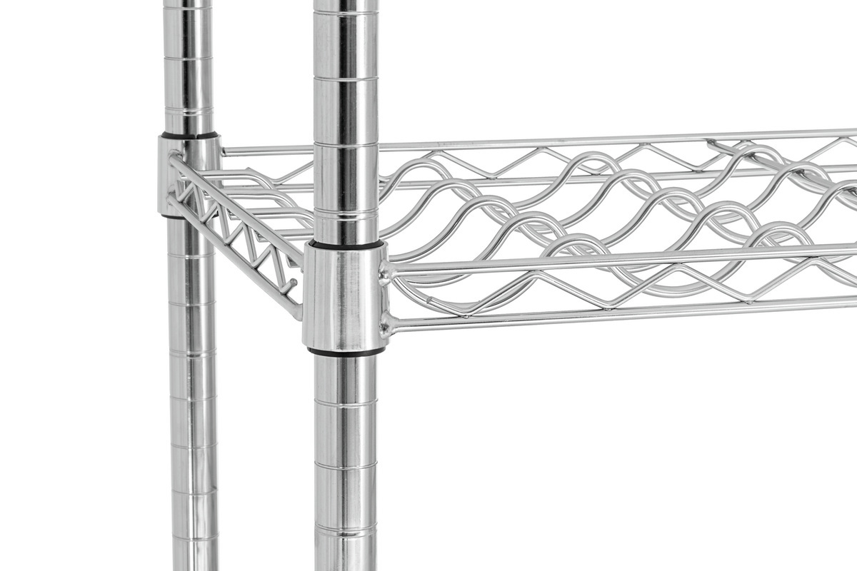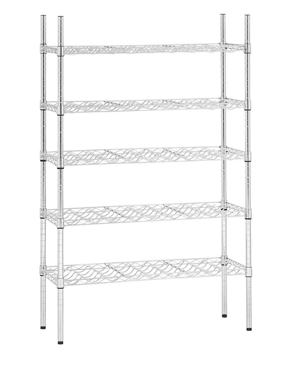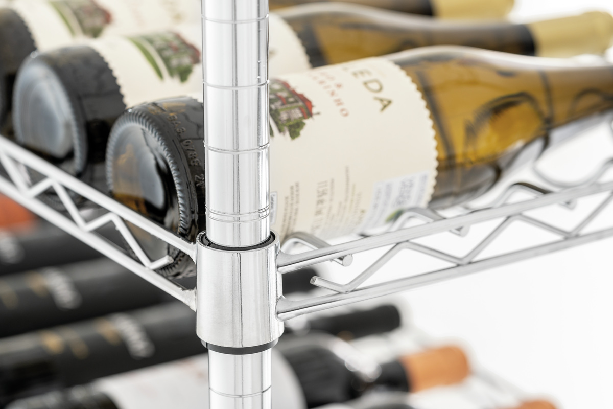Mit dem Weinregal lagern sie bis zu 130 Flaschen liegend und platzsparend auf 5 Flaschenrosten aus verchromtem Stahl. Durch das einfache Stecksystem ist es im Handumdrehen aufgebaut und sofort einsatzbereit.