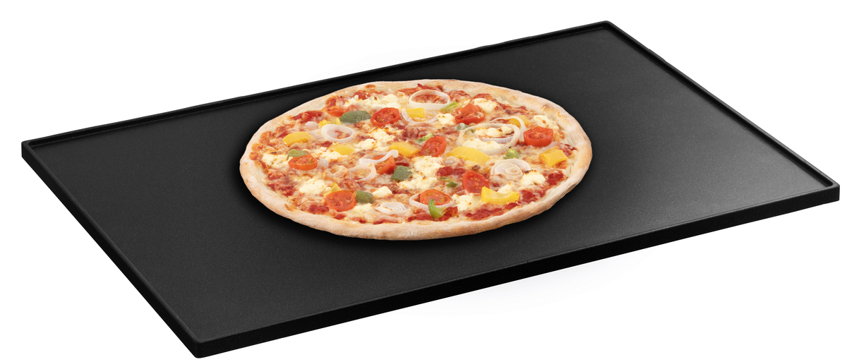 Die Wende-Grillplatte bietet die perfekte Ergänzung für Kombidämpfer oder öfen mit Einschubmöglichkeiten von 600 x 400 mm. Die glatte Seite ermöglicht das Backen von wunderbar knuspriger Pizza, auf der gerillten Seite bekommen Grillgemüse oder Fleisch das typische Grillmuster und herzhafte Röstaromen.