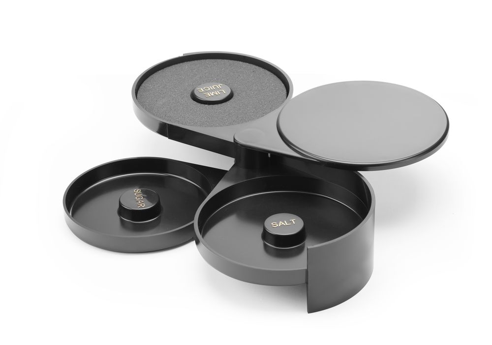 Dieses Bar-Essential bewahrt alle Zutaten für die Herstellung von professionellen Zuckerrändern auf zB Cocktailgläsern sicher und platzsparend auf. Ihr Kunden werden begeistert sein.