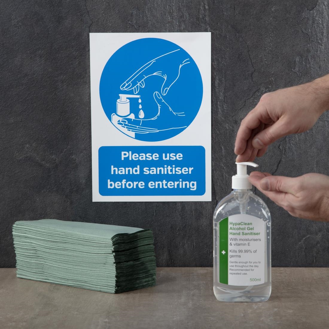 Bitte verwenden Sie Händedesinfektionsmittel, bevor Sie das selbstklebende Schild A4 eingeben