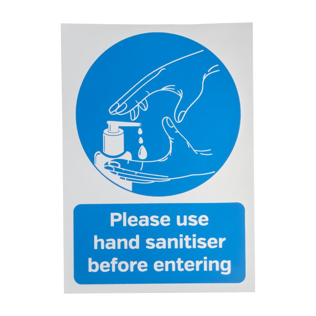 Bitte verwenden Sie Händedesinfektionsmittel, bevor Sie das selbstklebende Schild A5 eingeben