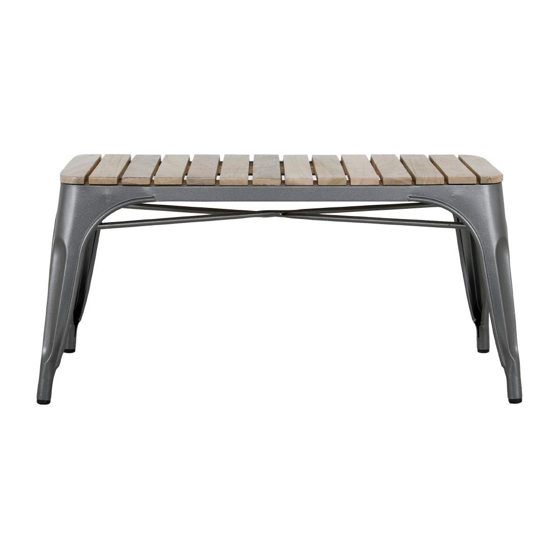 - Gunmetal pulverbeschichteter Stahlrahmen und Lattenplatte aus Mangoholz