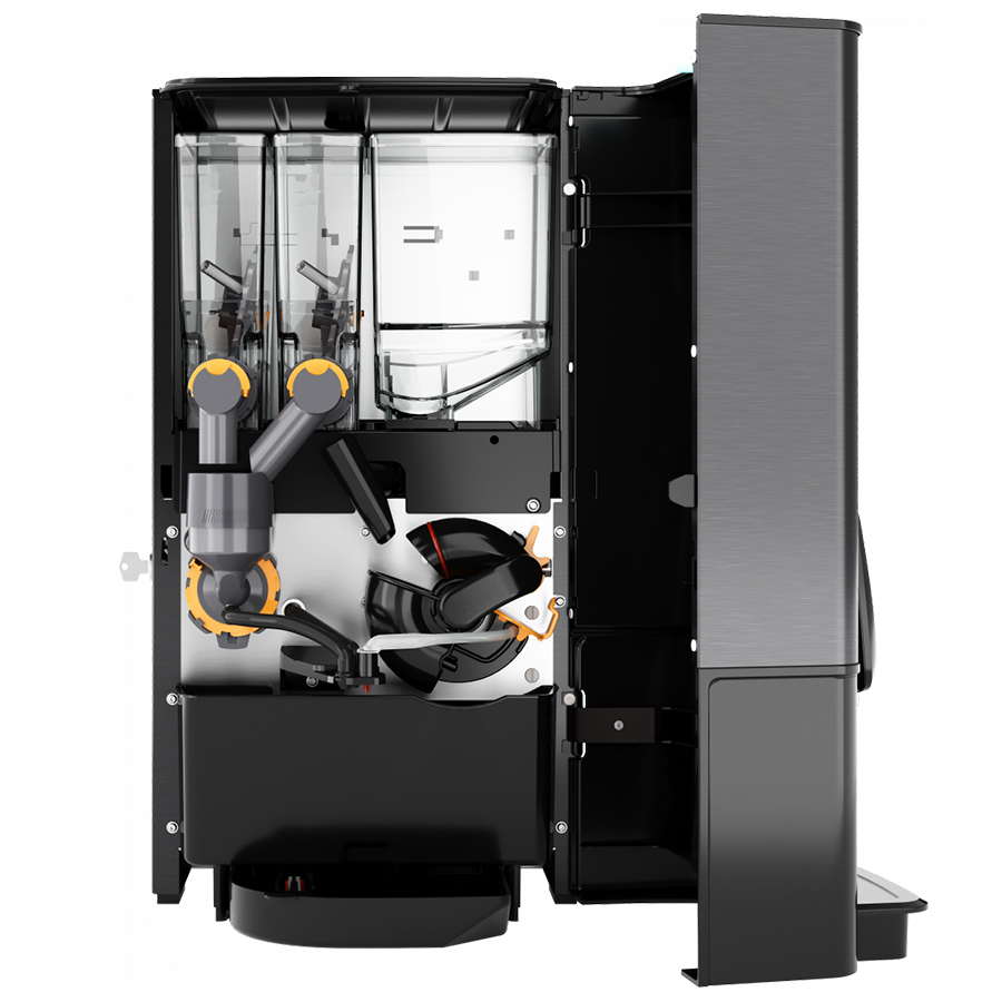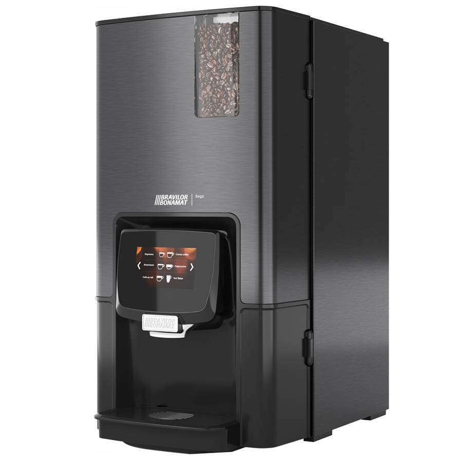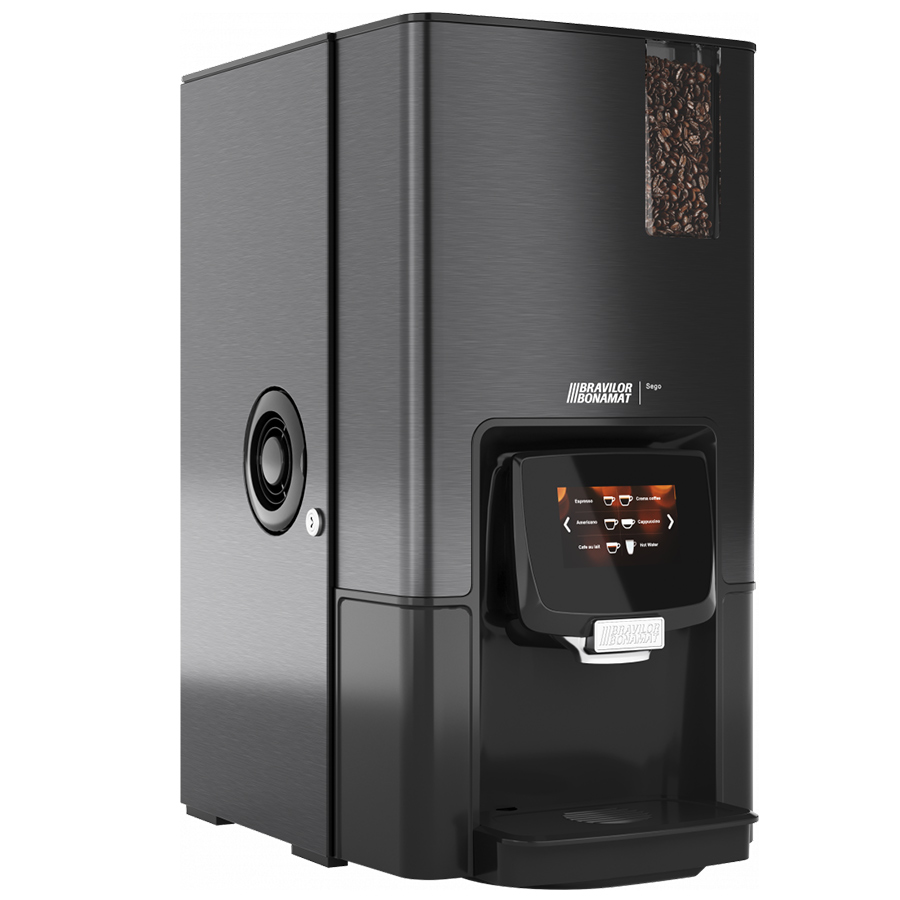 - Dank ihres kompakten Designs passt die Sego perfekt an Standorte mit begrenzter Stellfläche. Ideal für Büros, Kioske, Lounges oder überall dort, wo jeder Quadratmeter zählt. Trotz ihrer kompakten Größe bietet sie eine beeindruckende Leistung und bereitet eine breite Auswahl an Kaffeespezialitäten – von Espresso über Cappuccino bis Latte Macchiato – auf Knopfdruck zu. So genießen Mitarbeiter, Kunden oder Gäste jederzeit hochwertigen Premium-Kaffee, steigern die Zufriedenheit und verwandeln jede kurze Pause in einen echten Genussmoment.