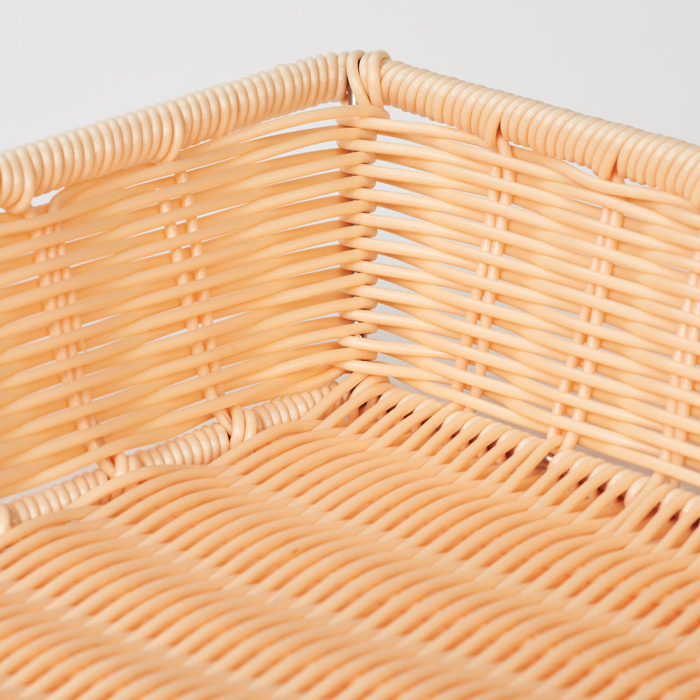 Der Korb aus dekorativem Geflecht gehört zu den Klassikern unter den Buffetkörben und eignet sich zum Servieren von Brot, Brötchen, Eiern, Portionspackungen oder Obst gleichermaßen. Durch den in das Geflecht eingearbeiteten Stahldraht ist der Korb sehr stabil und formbeständig. Das Geflecht ist aus pflegeleichtem Polypropylen, weshalb Sie den Buffetkorb ohne Komplikationen in der Spülmaschine reinigen können.