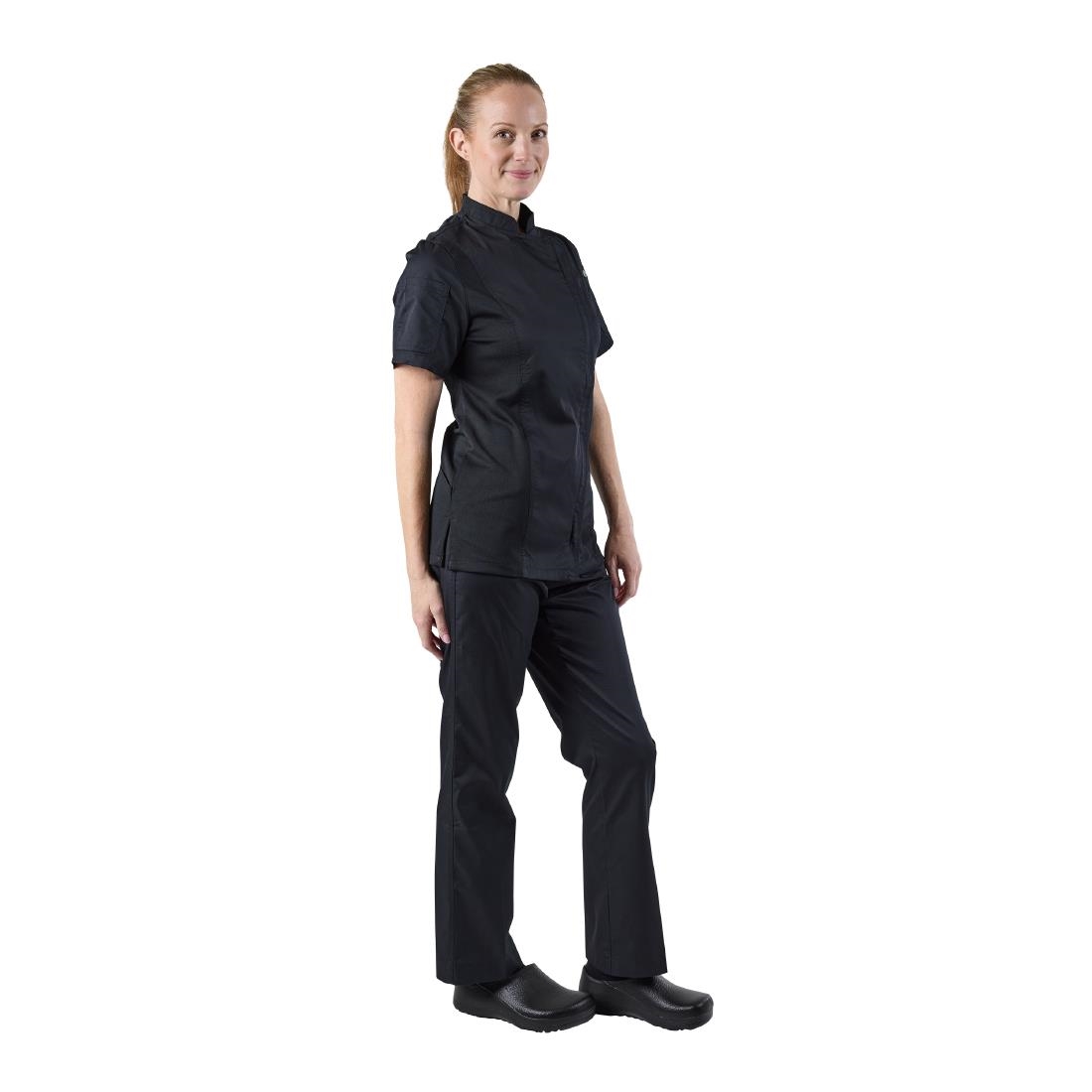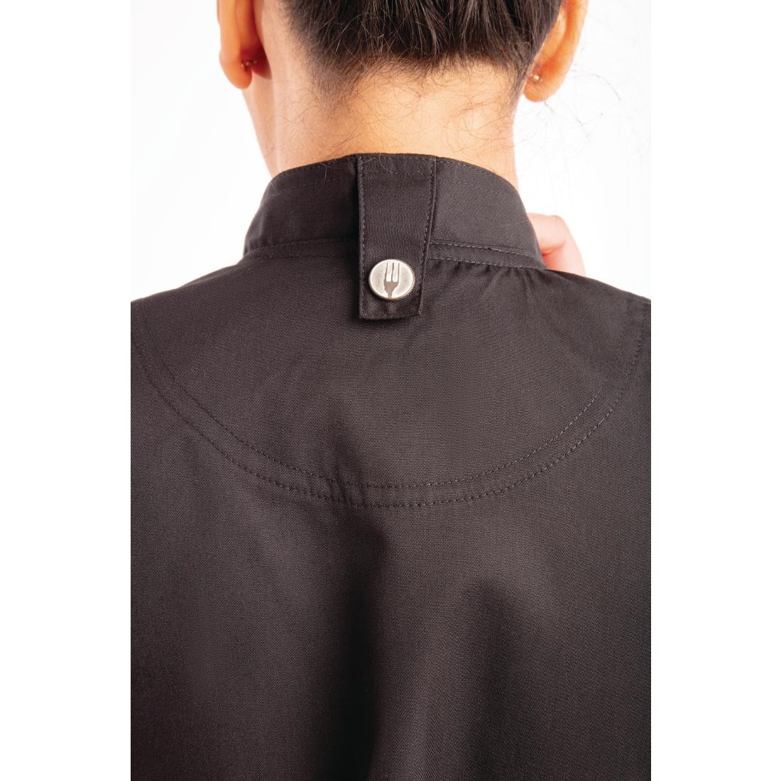 Stretch-Einsätze ermöglichen maximale Bewegungsfreiheit, während die Jacke weiterhin figurumschmeichelnd anliegt. Die Schlaufe am hinteren Kragen hält Ihre Schürze jederzeit an Ort und Stelle und in den zwei Ärmeltaschen können Sie Thermometer und andere Hilfsmittel aufbewahren.
