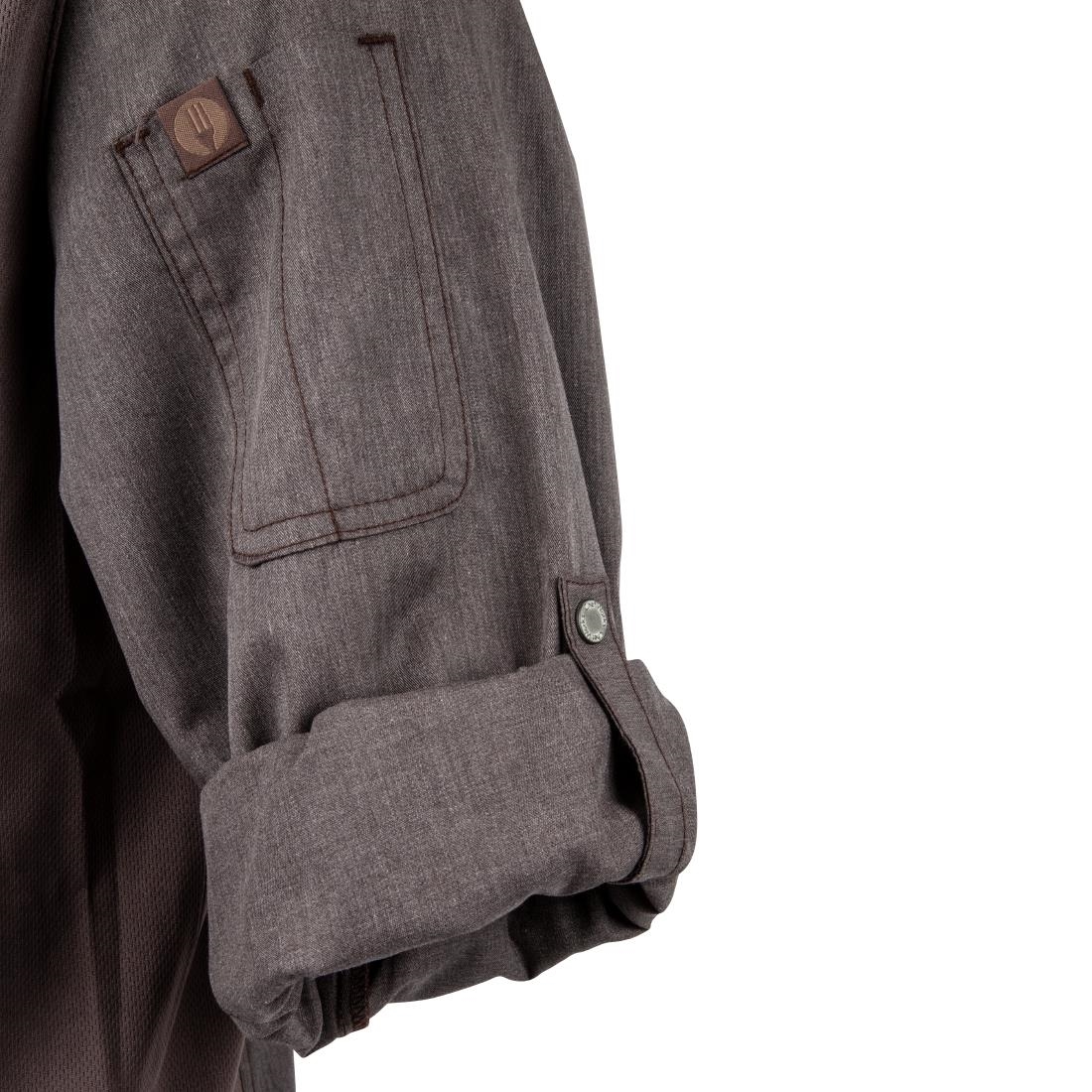 - Aufschlagbare Ärmel, die mit einem eingenähten Band und Druckknopf befestigt werden können