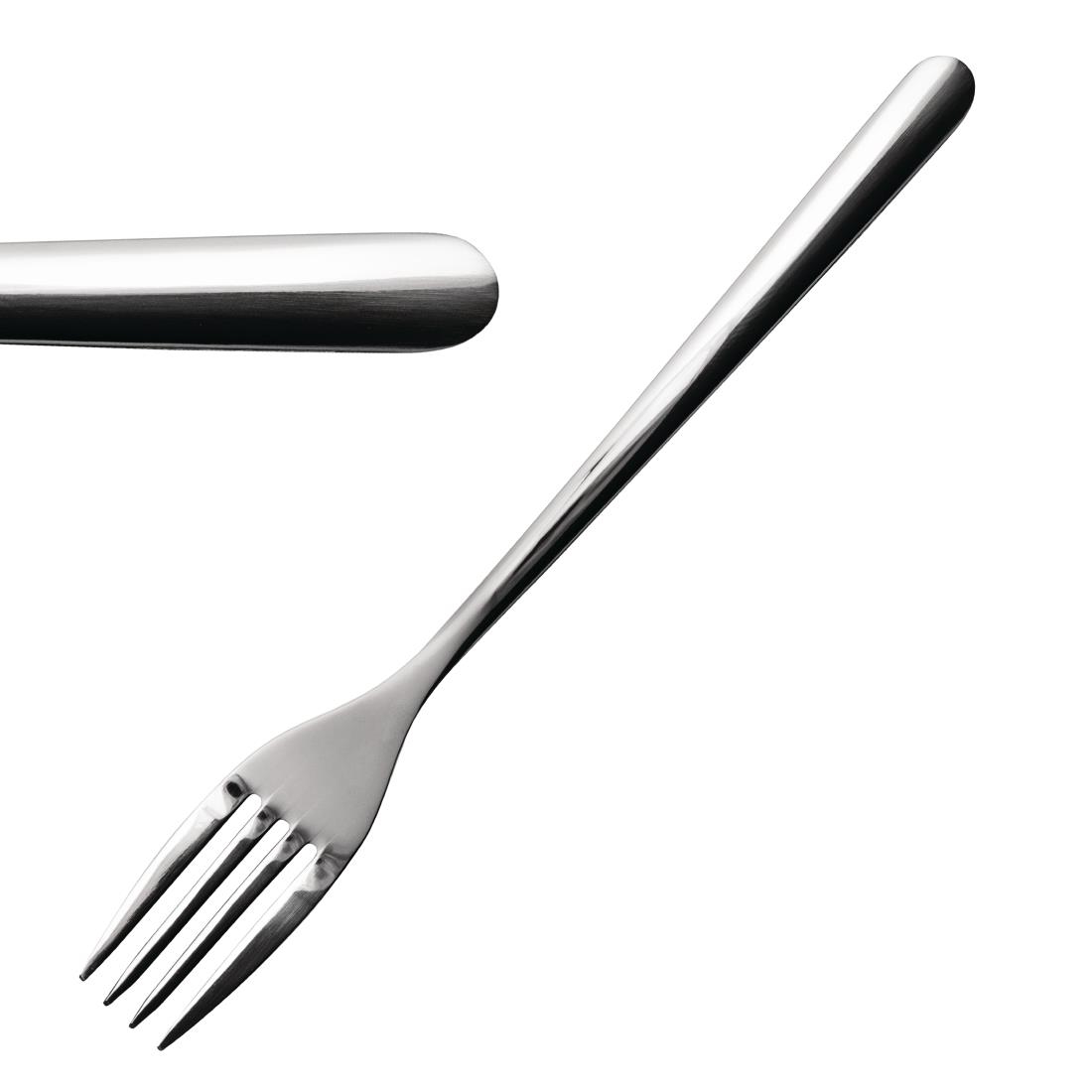 Das starke Edelstahlbesteck aus der Cuba-Serie kombiniert Stil mit unglaublicher Beständigkeit. Das ergonomische Design liegt bequem in der Hand. Polierter Edelstahl 18/0. Verkauft im 12er Pack.