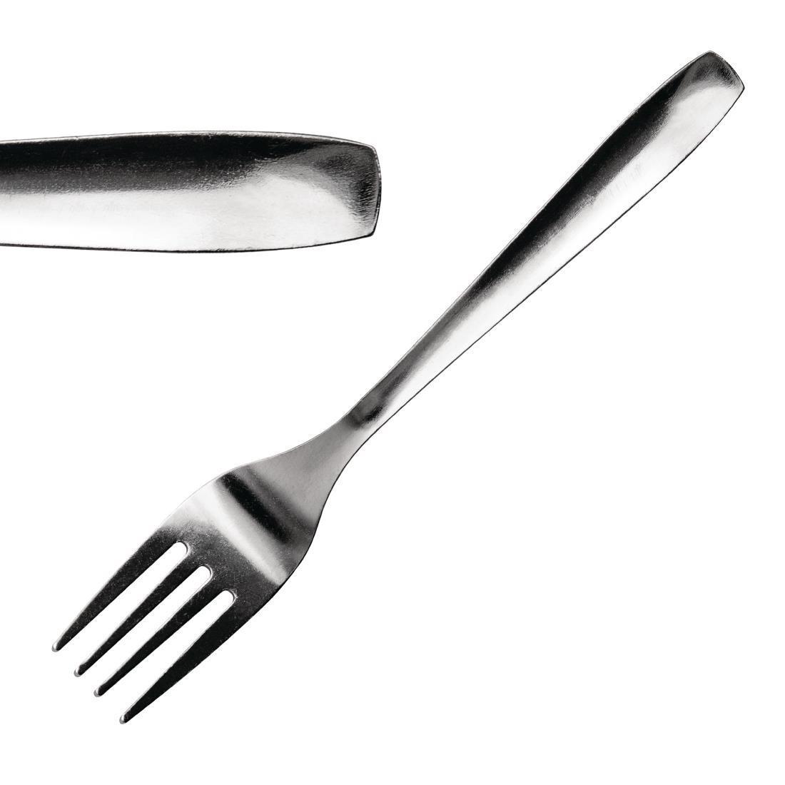 Die Hotel-Serie bietet fließende Linien und ein hochglanzpoliertes Finish für einen modernen und interessanten Look. Hergestellt aus robustem Edelstahl 18/0. Verkauft im 12er Pack.